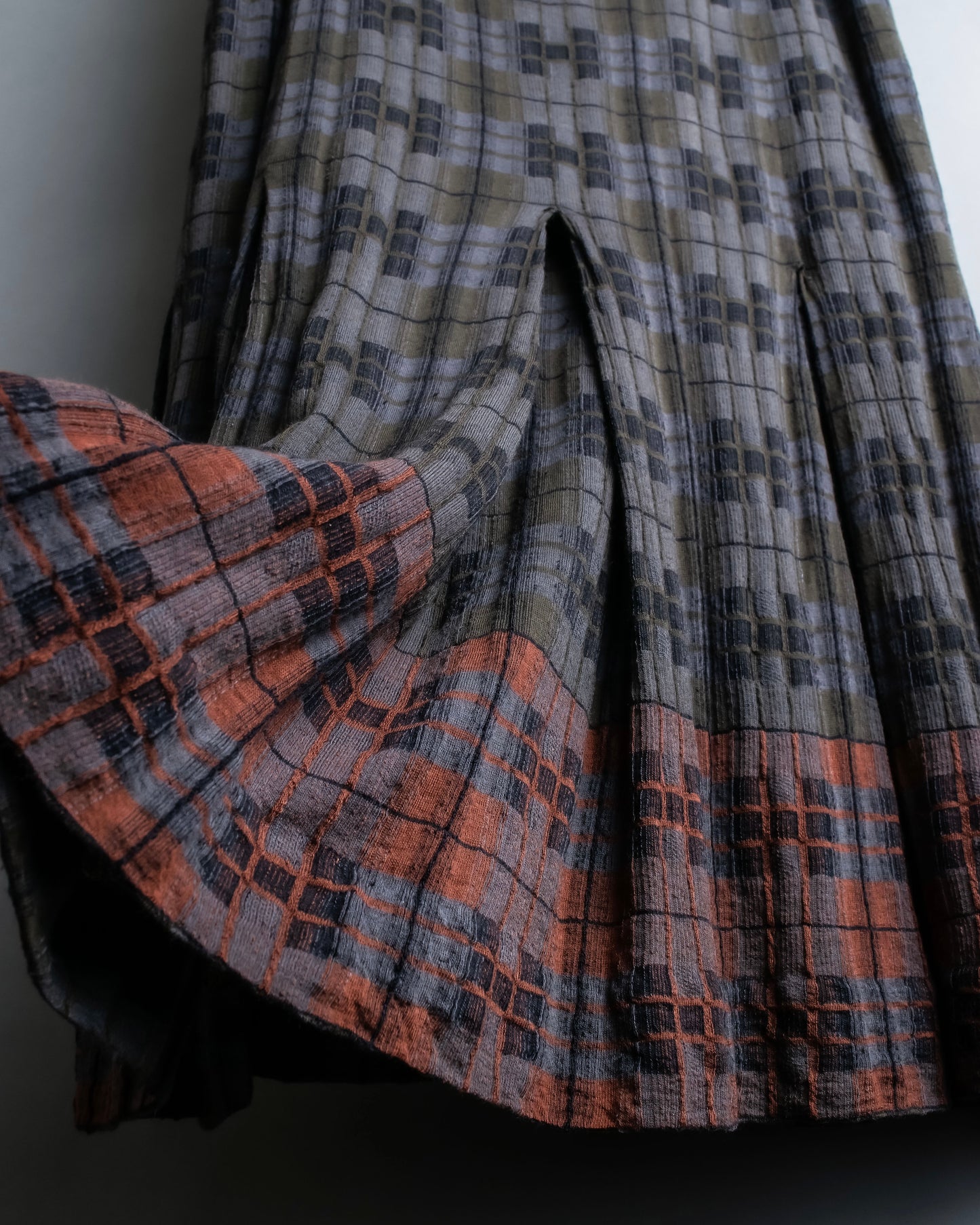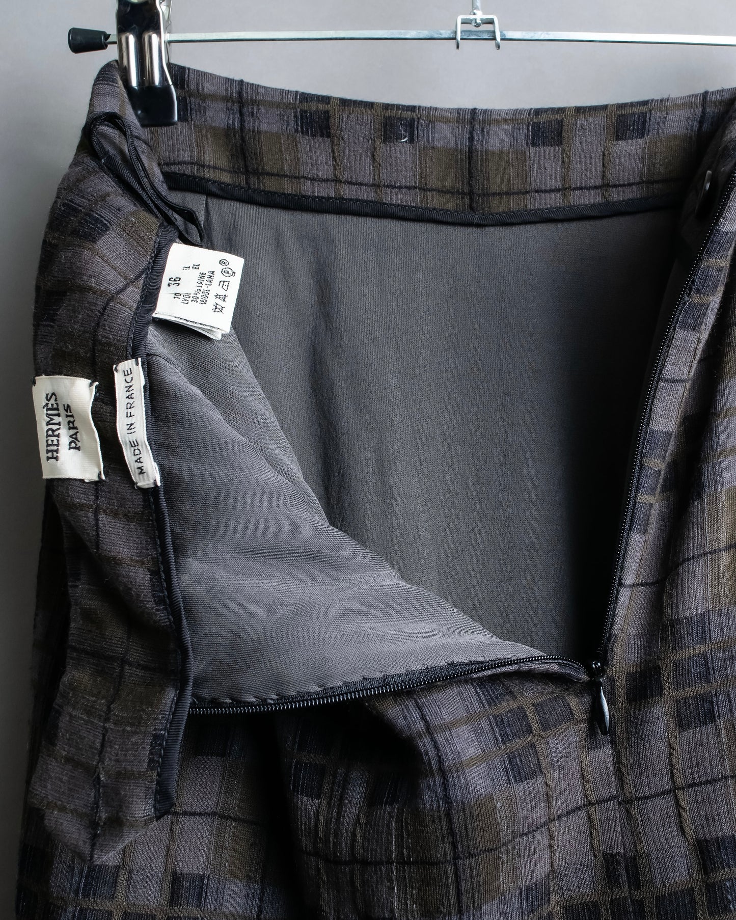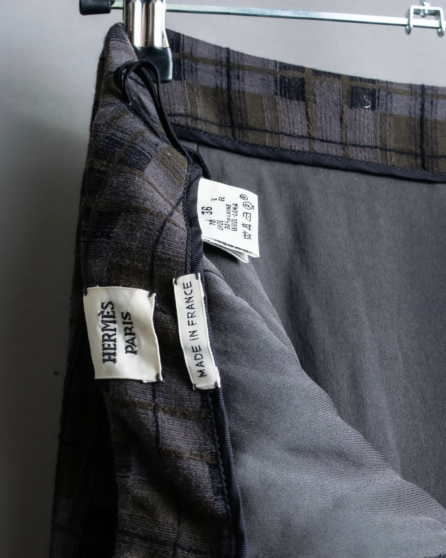 "HERMES" Check pattern cropped skirt