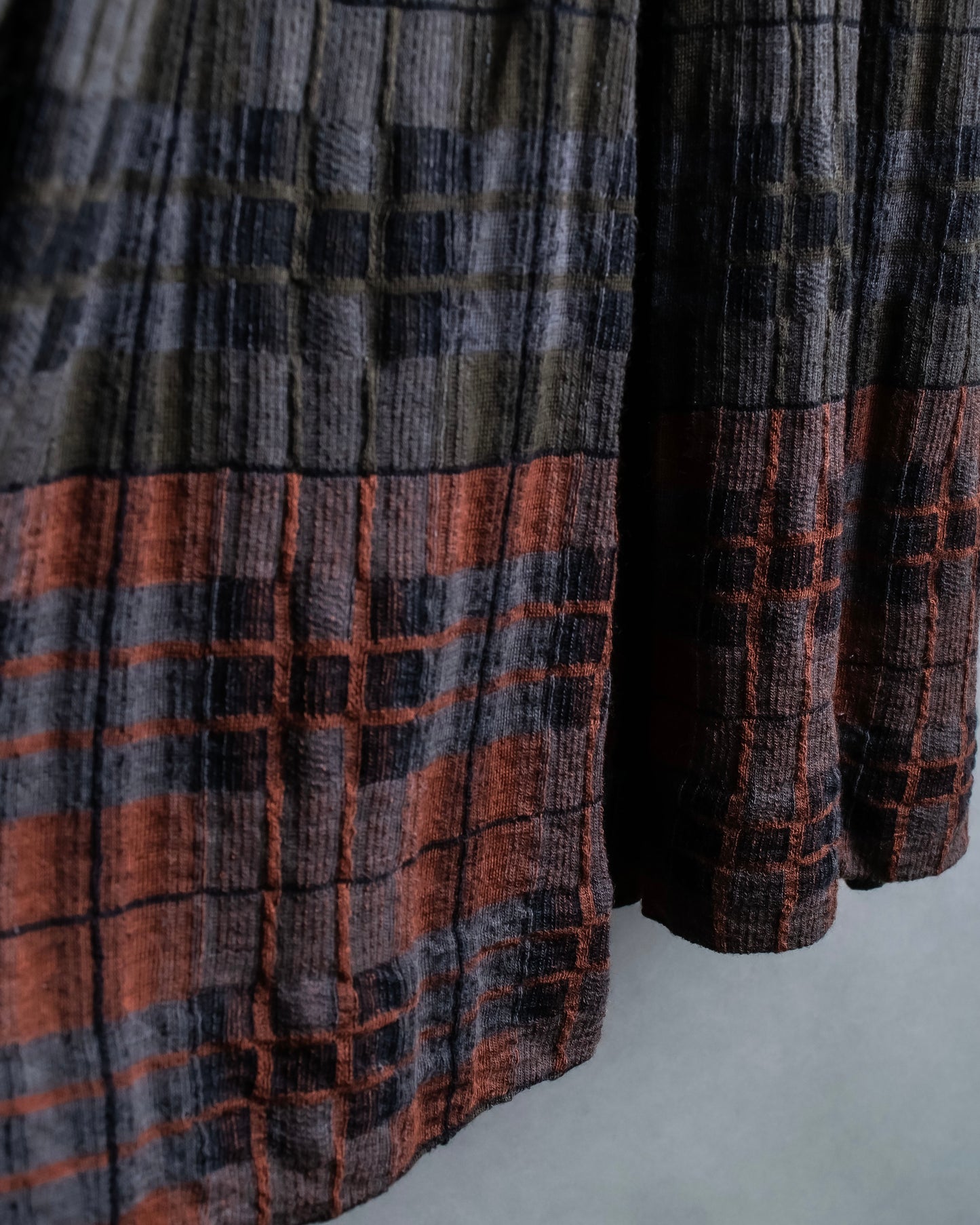 トーンオントーンと呼ばれる同じ色調で統一された落ち着きのある色合いのチェック柄となっている為、子供っぽい印象が先行してしまうチェック柄でも大人っぽい雰囲気に仕上がっています。