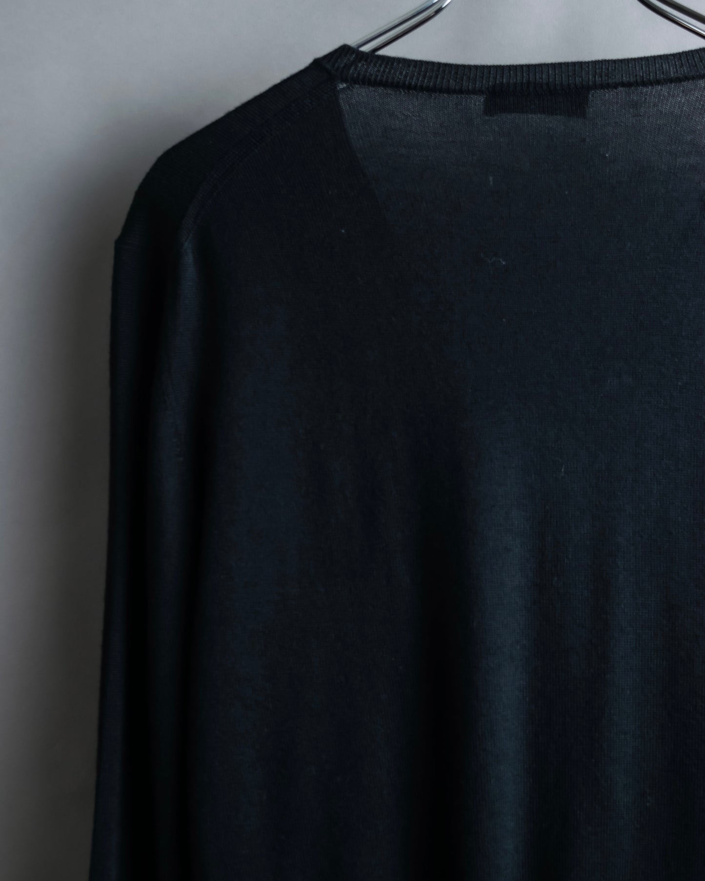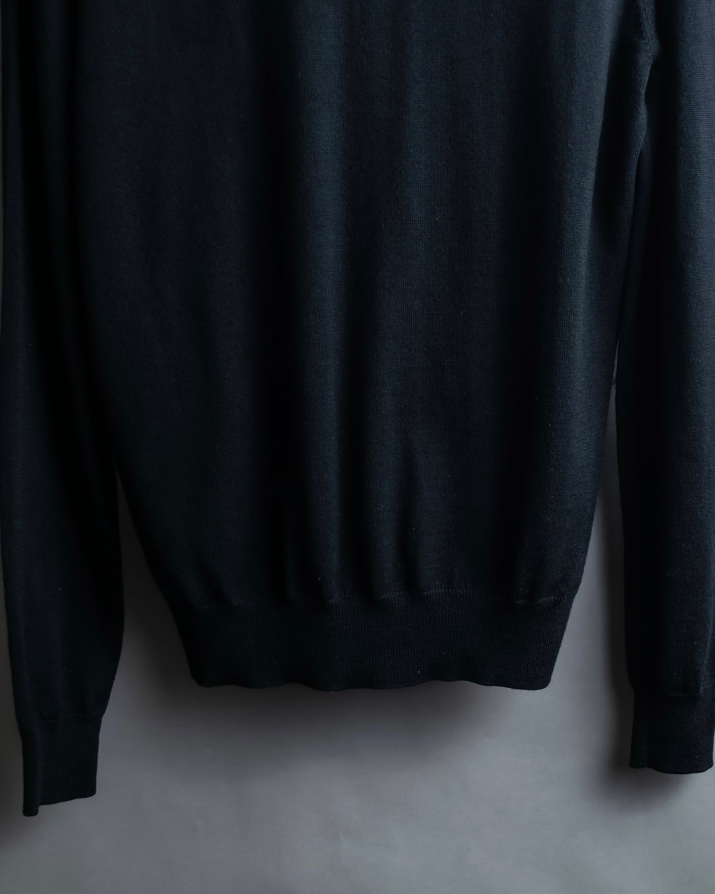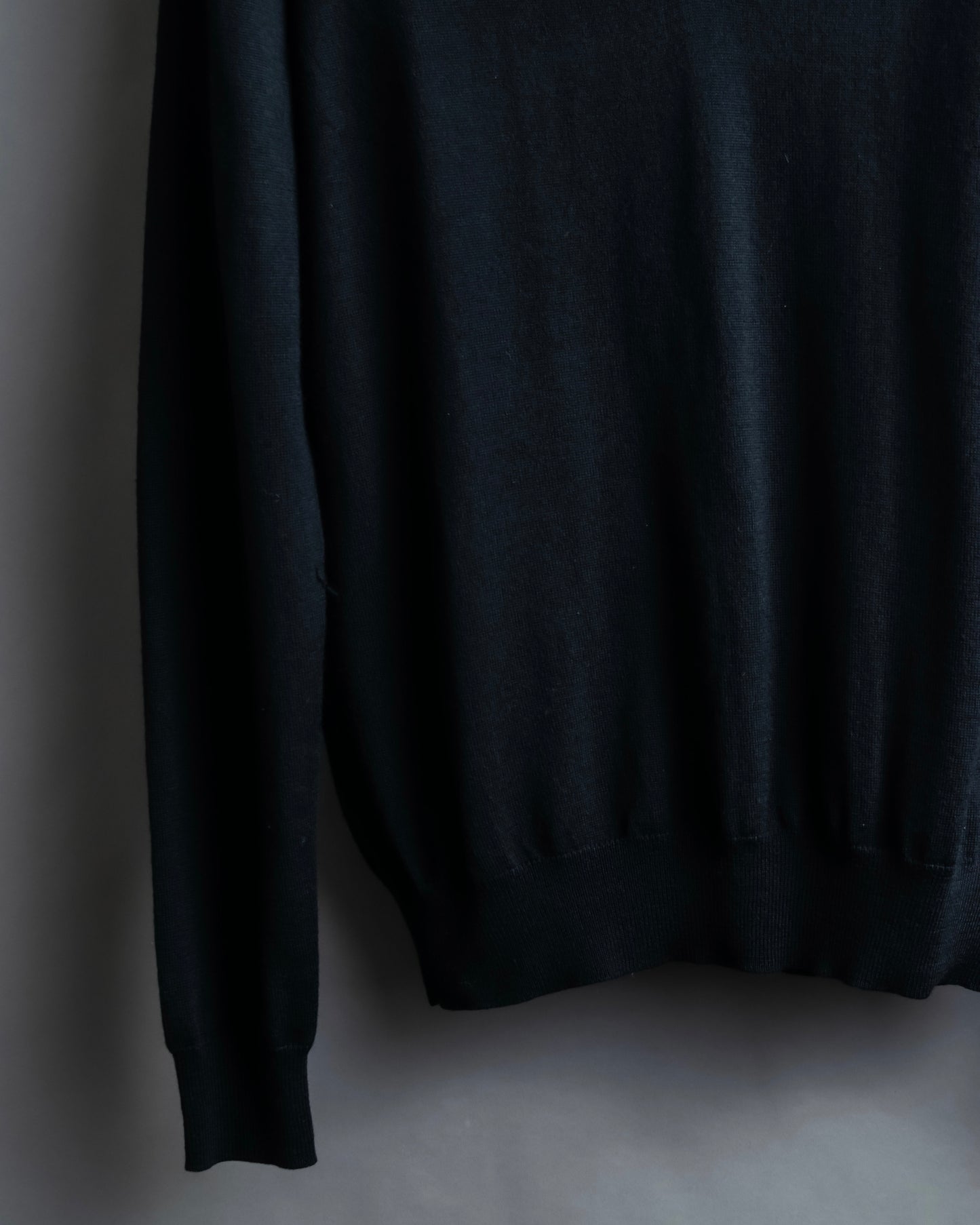 艶やかできめ細やかなウール素材を使用し、ハイゲージによって丁寧に編んだ美しい表面感が特徴で、シンプルでありながら高品質な素材と無駄な装飾性を削ぎ落としたクワイエットラグジュアリーを感じさせるこちらの逸品。