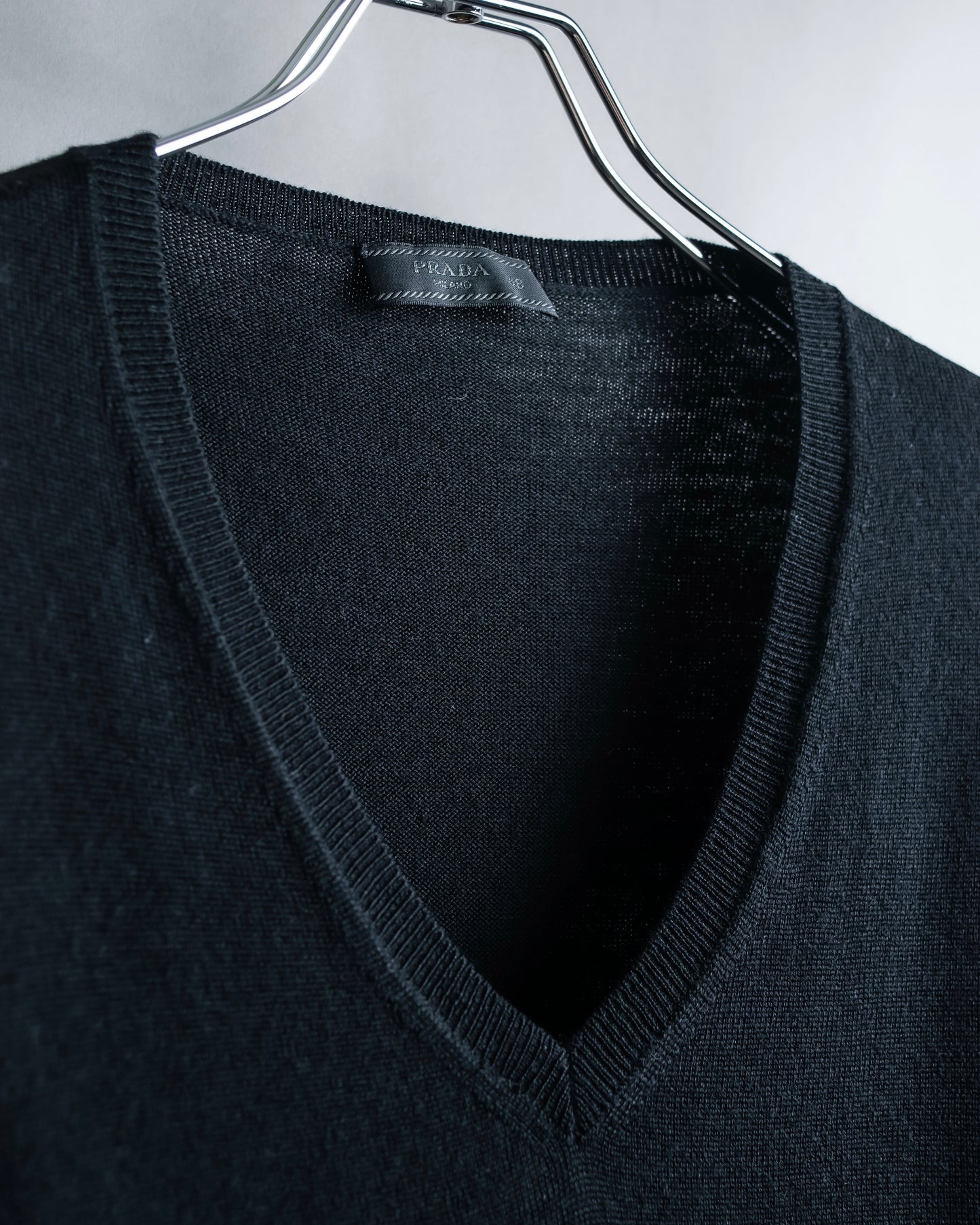 "PRADA" V-neck relaxed wool high gauge knit pullover