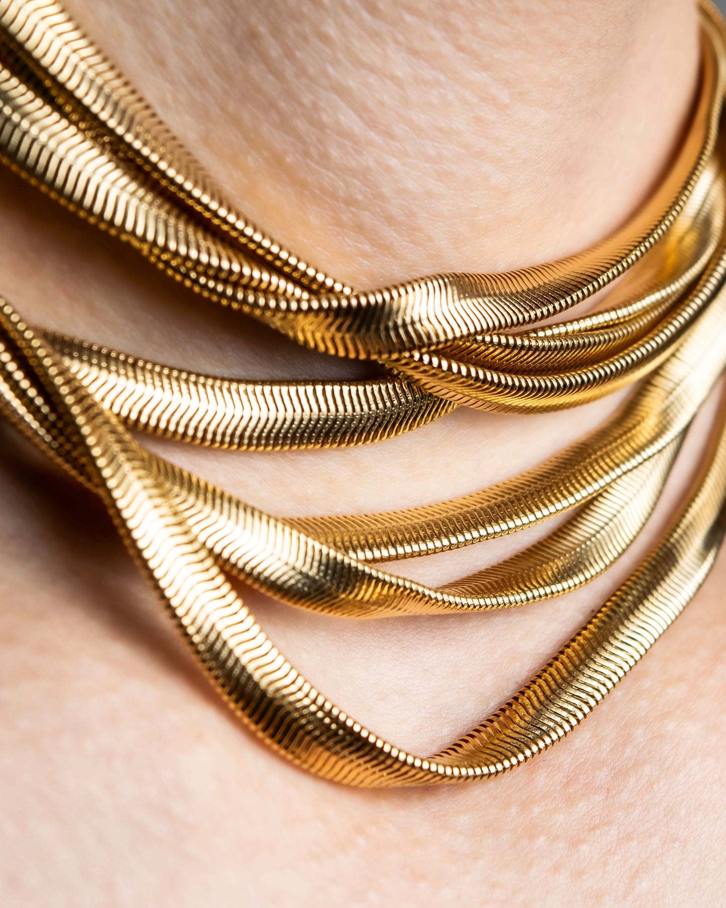 7本の連なった蛇腹状のチェーンがラグジュアリーな印象を