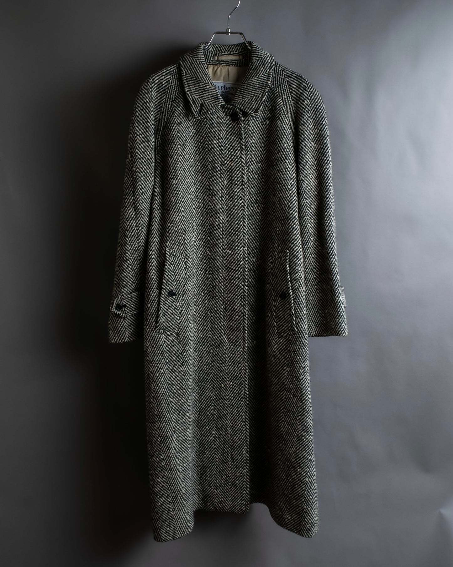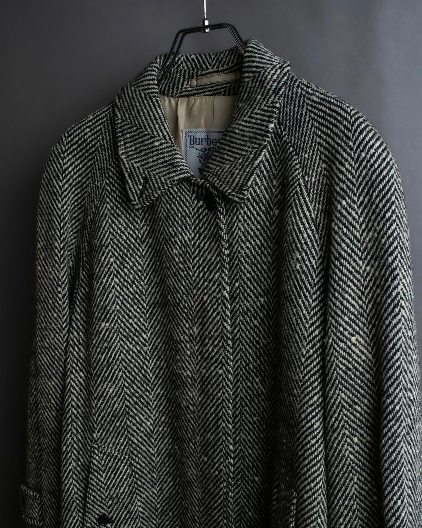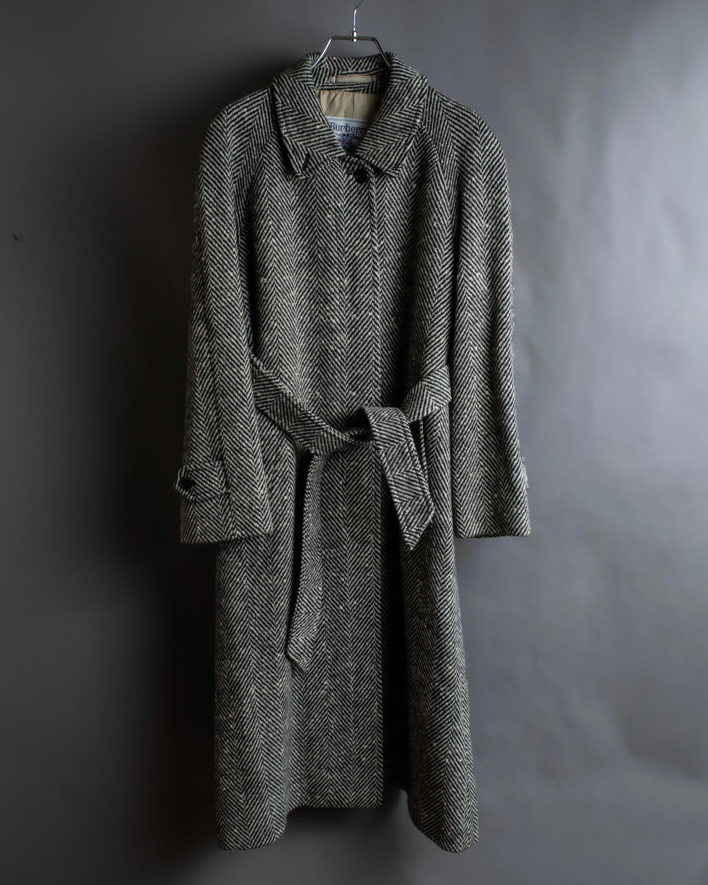 "BURBERRYS" Herringbone belted design soutien collar coat