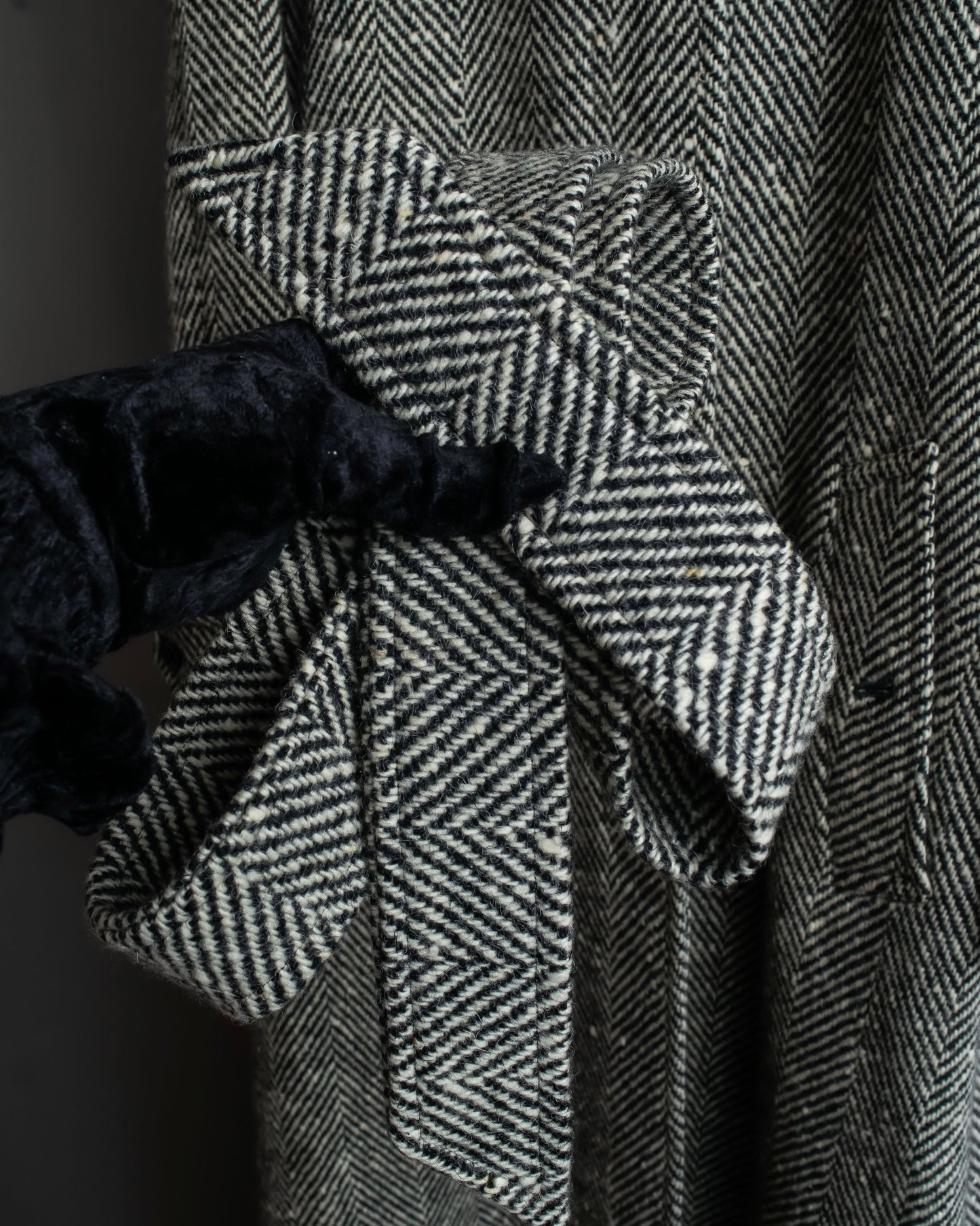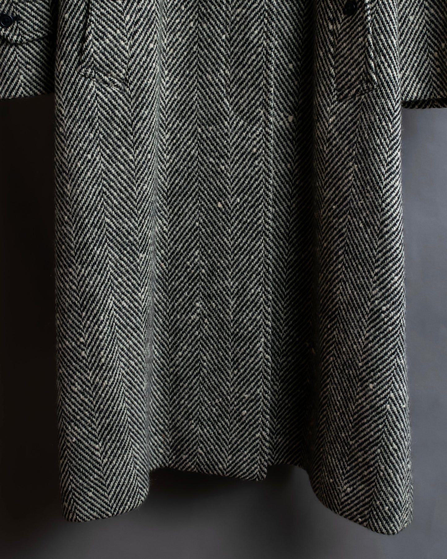 高級感のあるヘリンボーン生地を使用している為、独特かつ美しい厚みがあり、保温性や耐久性にも優れている為、AWシーズンの一張羅としての風格が素材感からもお楽しみ頂けます。