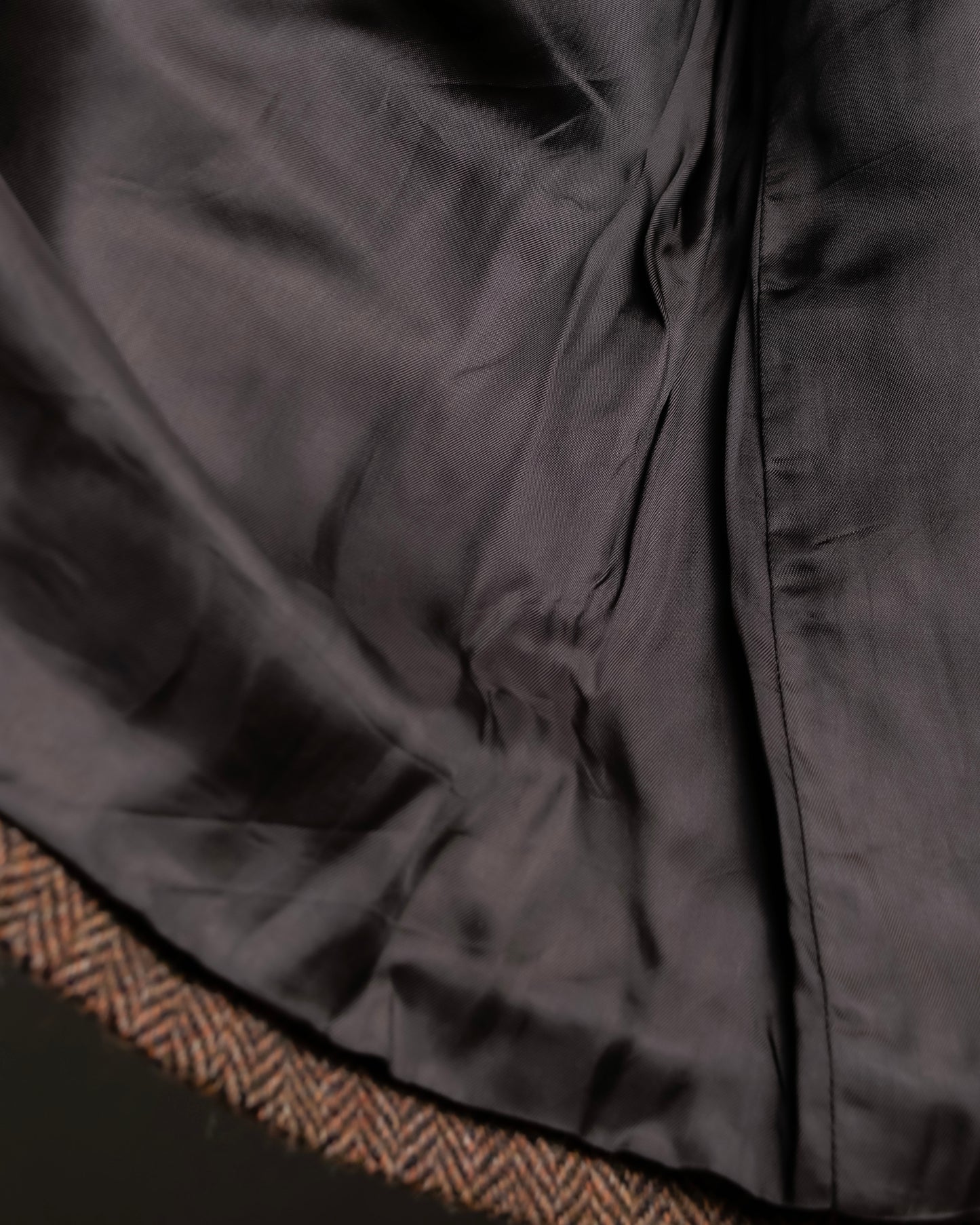 ハリスツイード性の仕立ての良さが引き立っている重厚なヘリンボーン生地を使用している為、厚みがによる高級感があり、保温性や耐久性にも優れているAWシーズンに、適している着用感を誇っております。