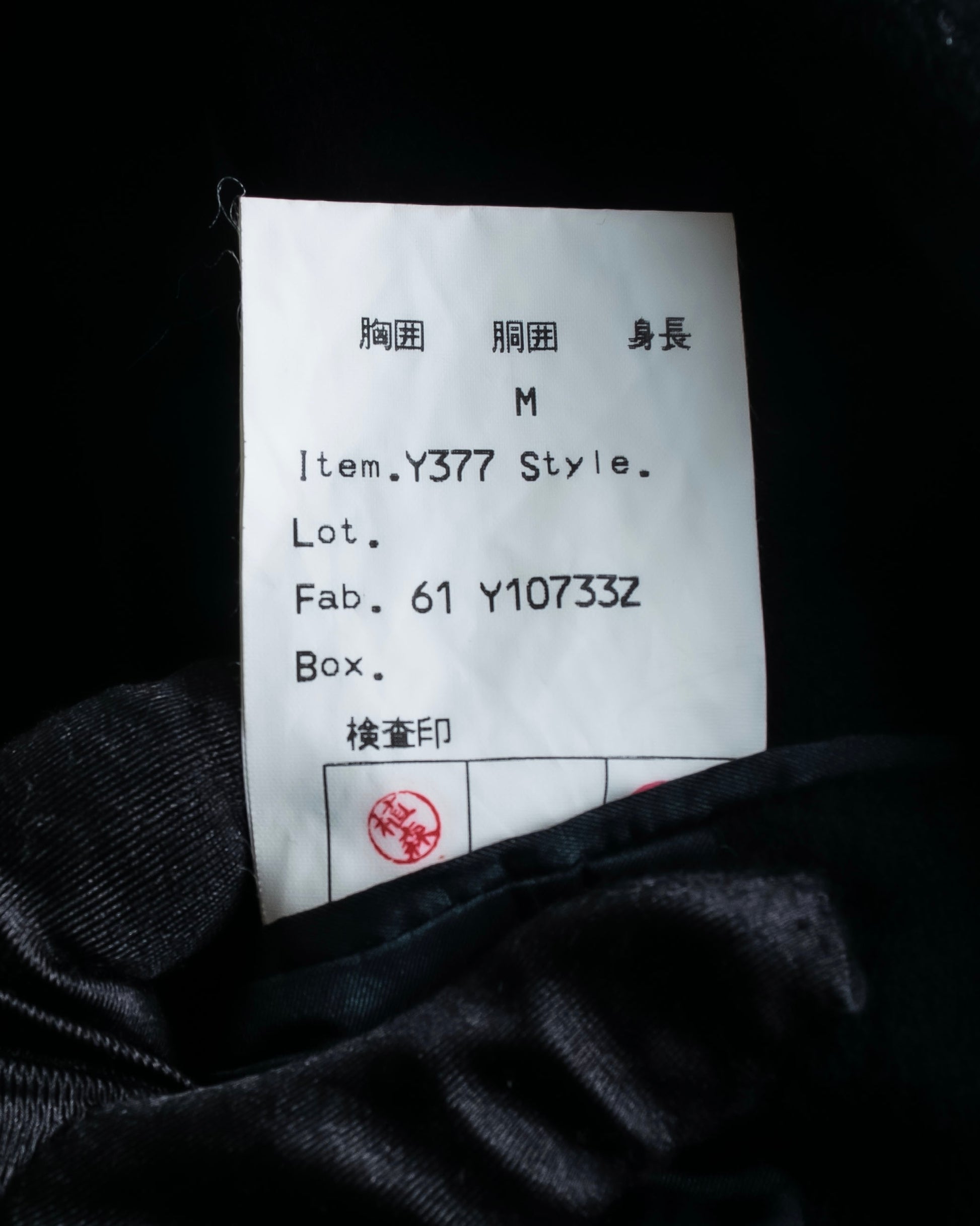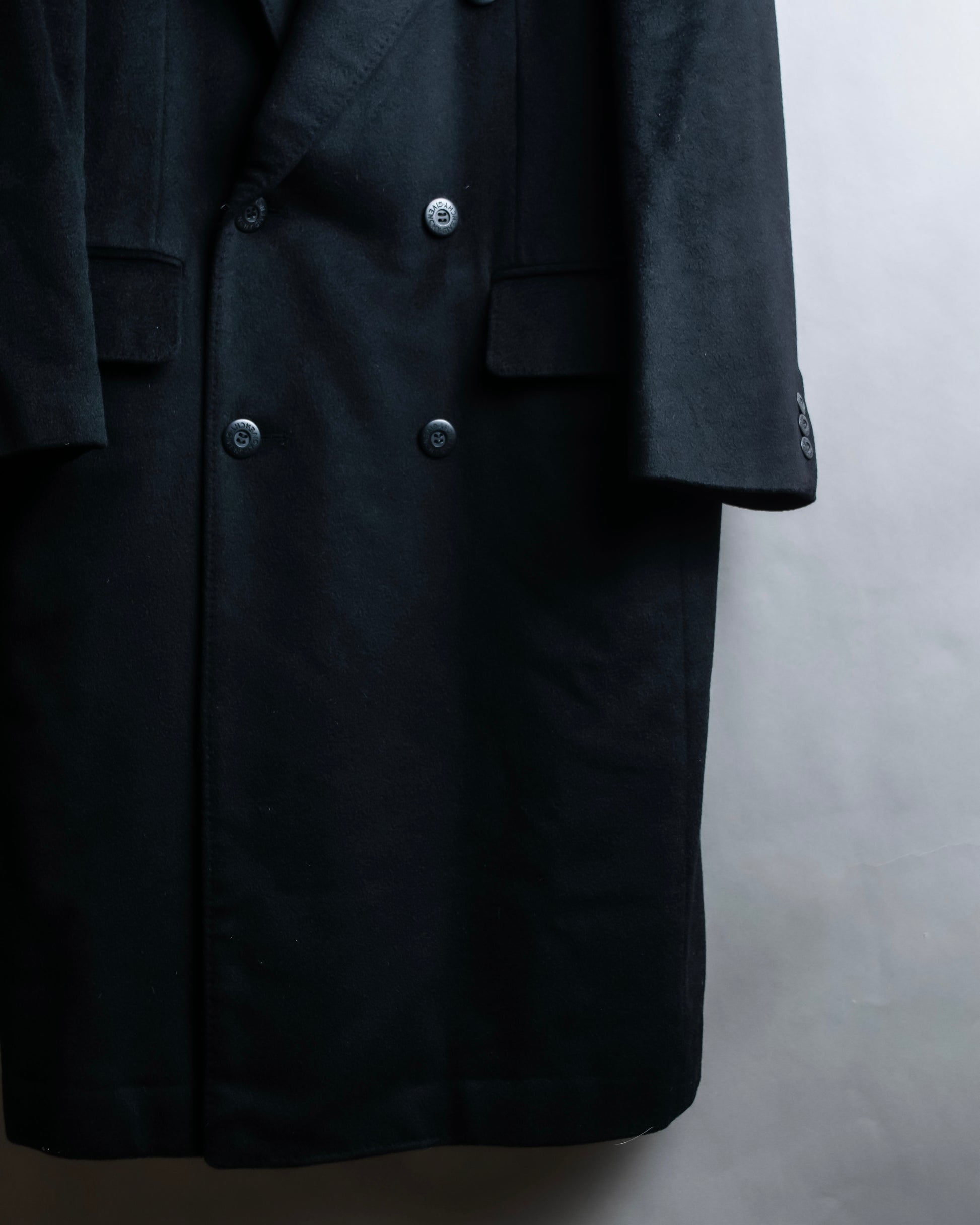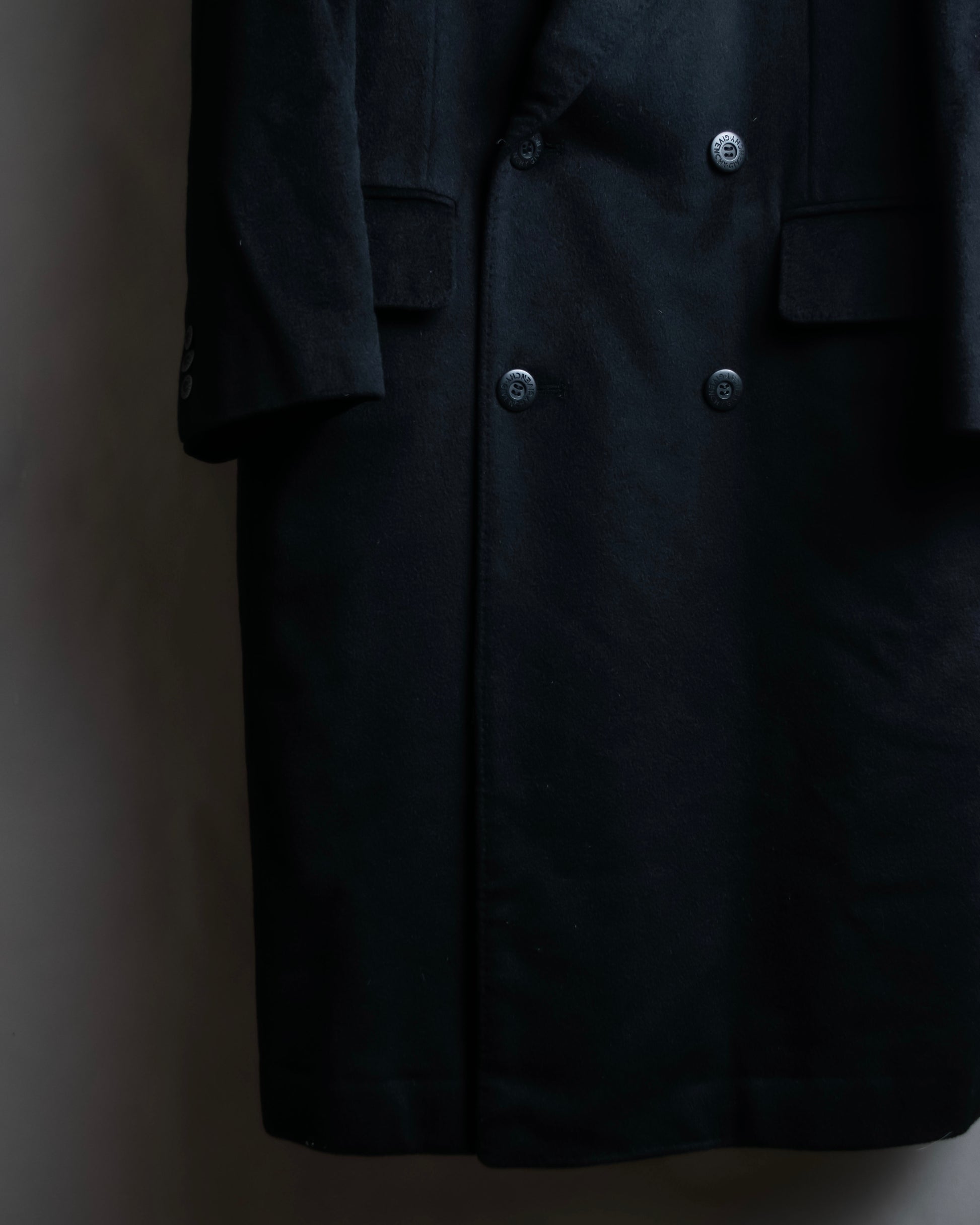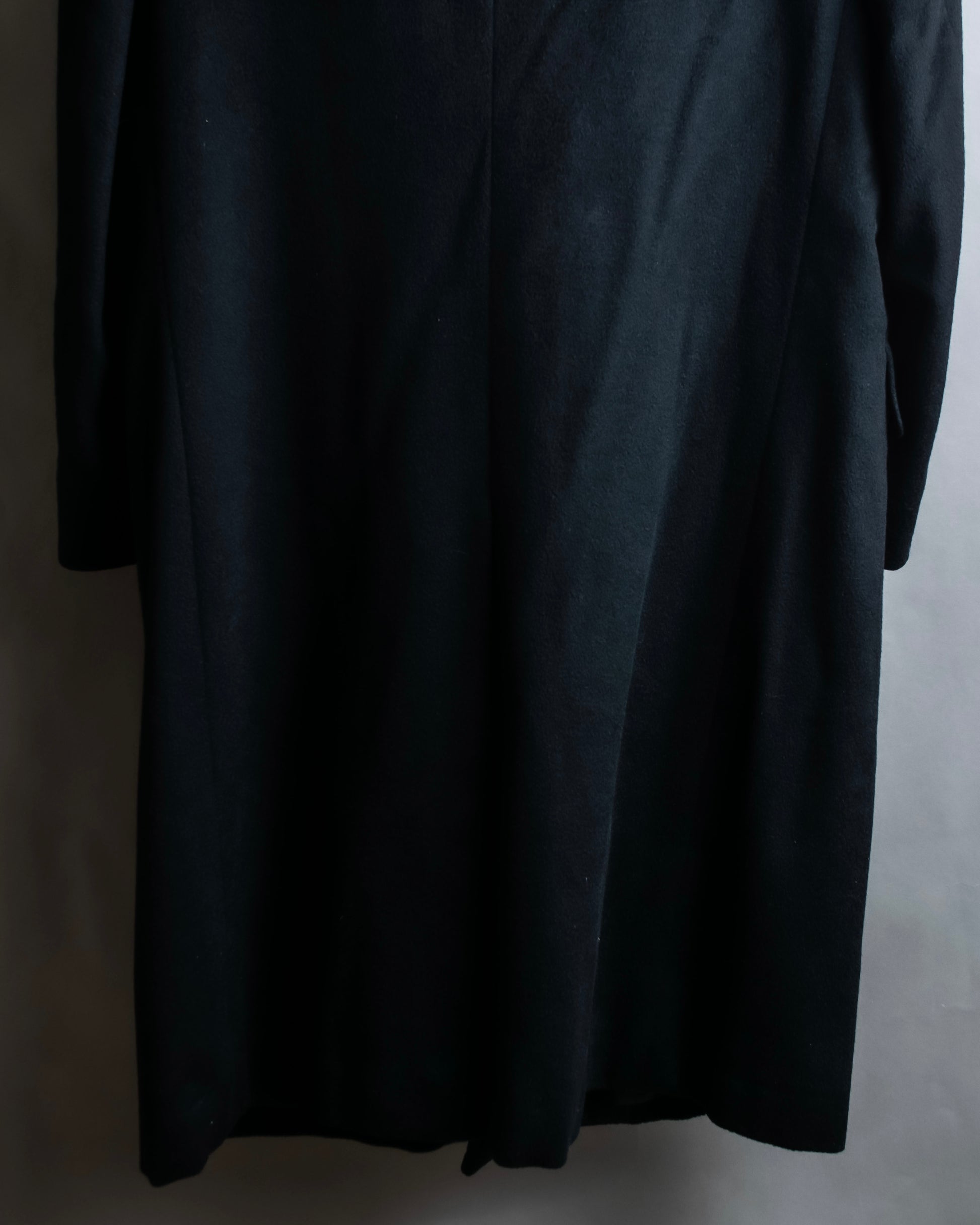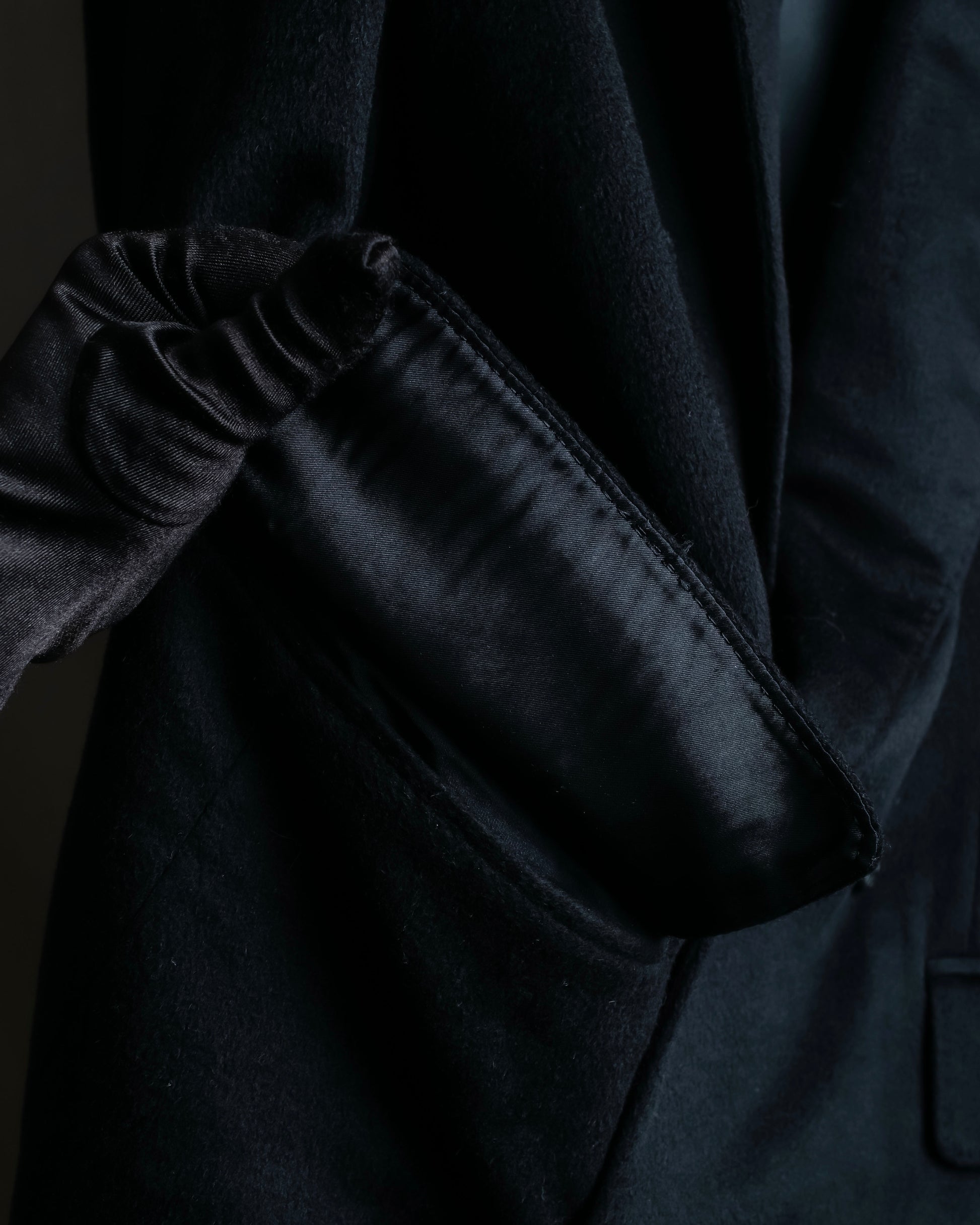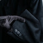 カシミヤを混紡した漆黒のウール素材を用いた重厚な仕立てにより、タイムレスな魅力を放つ一着となっておりますね。