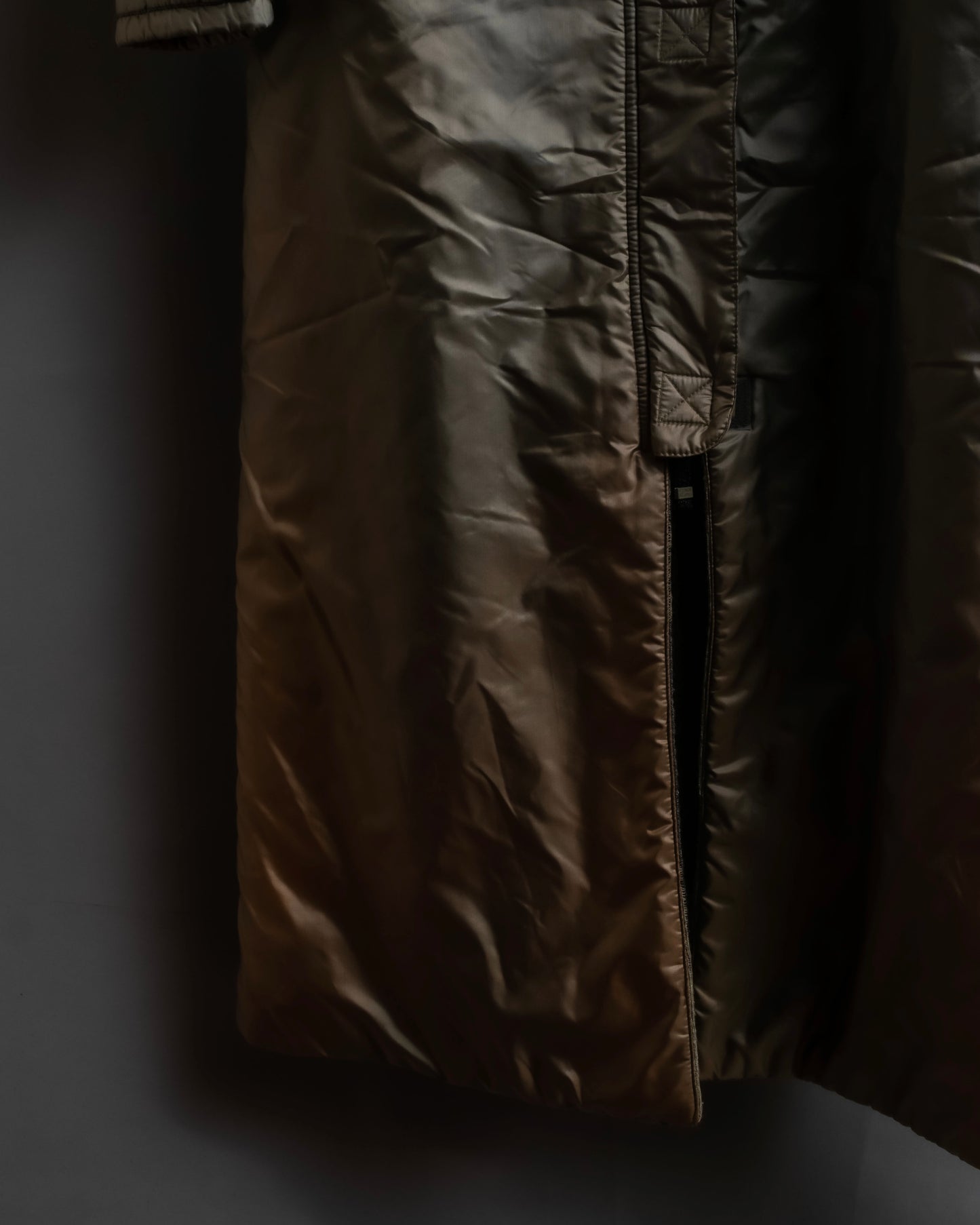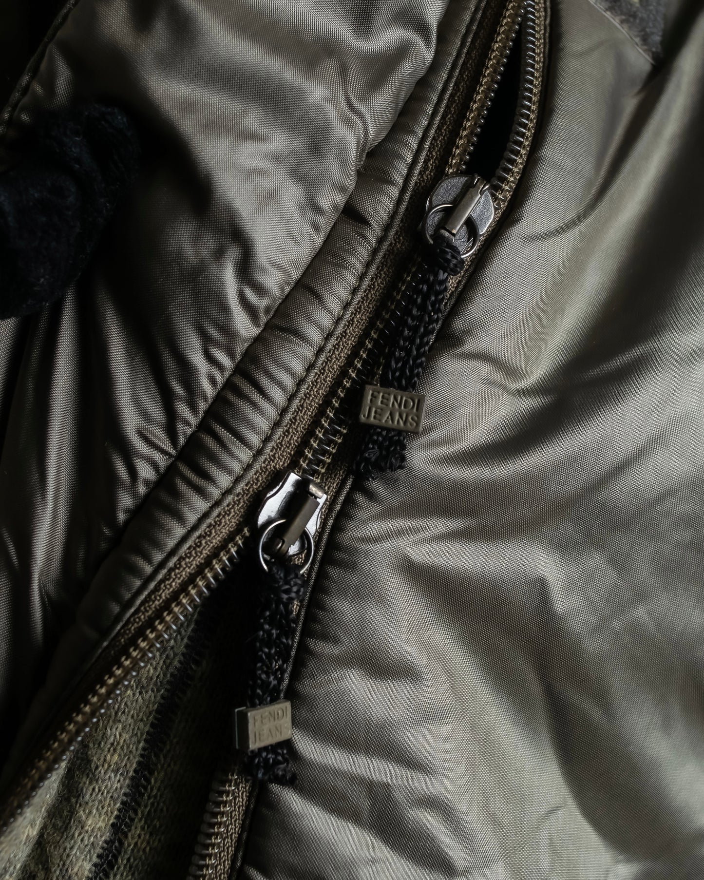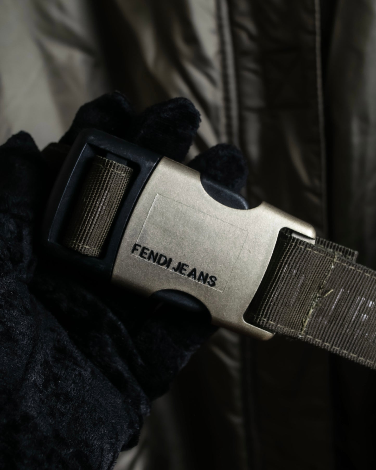 "FENDI JEANS" Hood design belted gradation color long nylon down coat