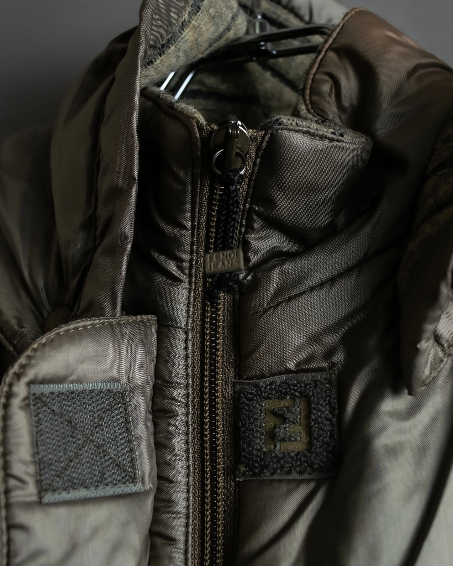 素材にもFENDIらしいこだわりが見られ、外側のシェルは滑らかな仕上げのナイロンで、軽量ながらも防風性と撥水性に優れている一方で、内側には柔らかなウール素材が使用されており、畝が施されている為、防寒性とさりげない高級感を加えております。