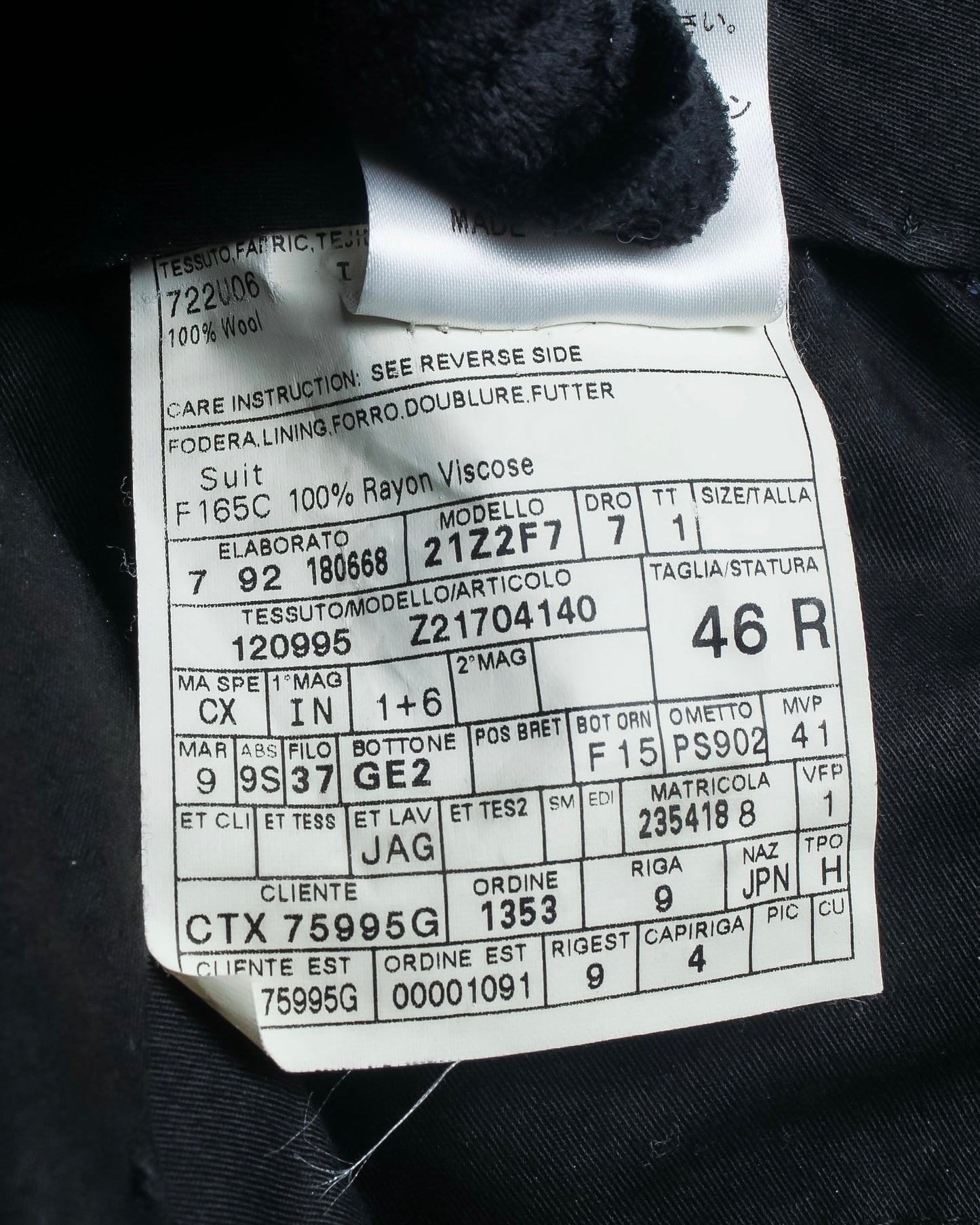 (SHELL) WOOL 100% (LINING) RAYON 100%
