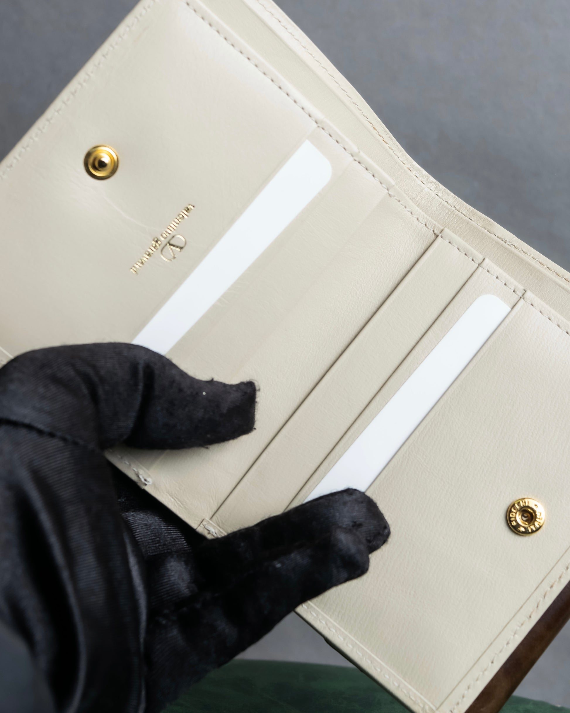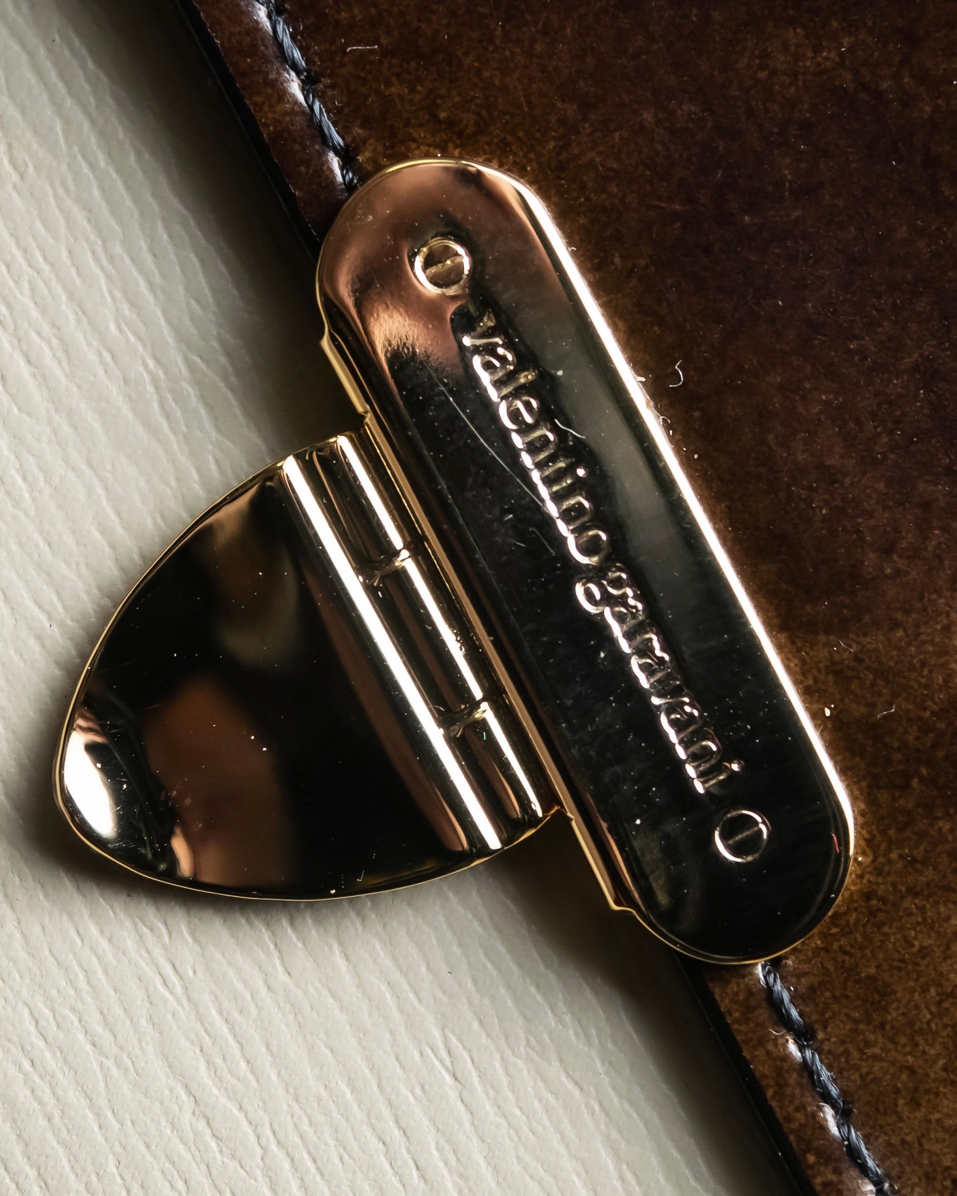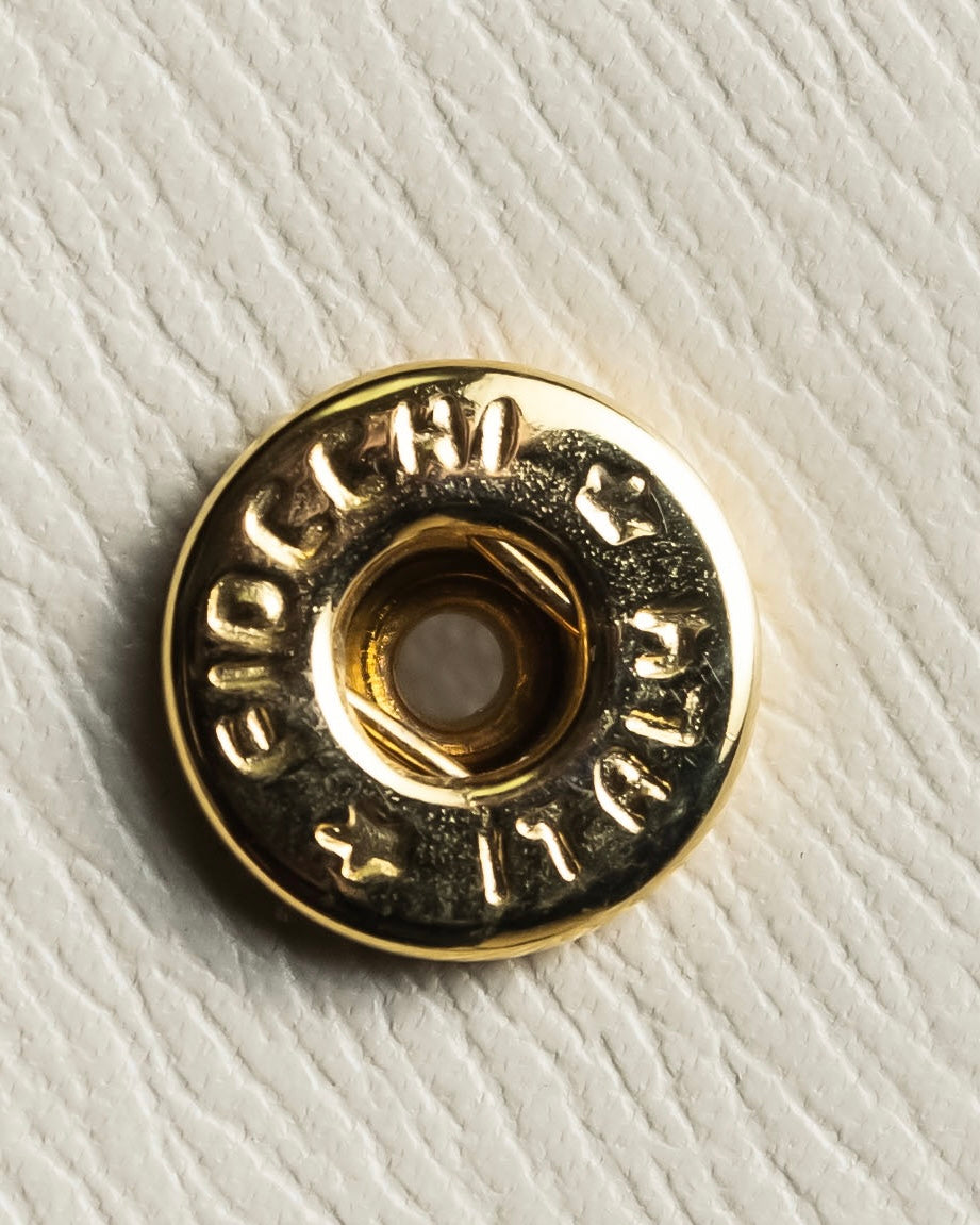 小銭入れ部分はスナップボタン式で、開閉がスムーズに行える仕様です。内側には柔らかいレザーが使用されており、触り心地も良く、小銭が取り出しやすい設計になっています。この部分の縫製も非常に細かく、Valentinoの職人技術が光るポイントです。