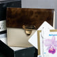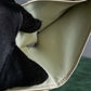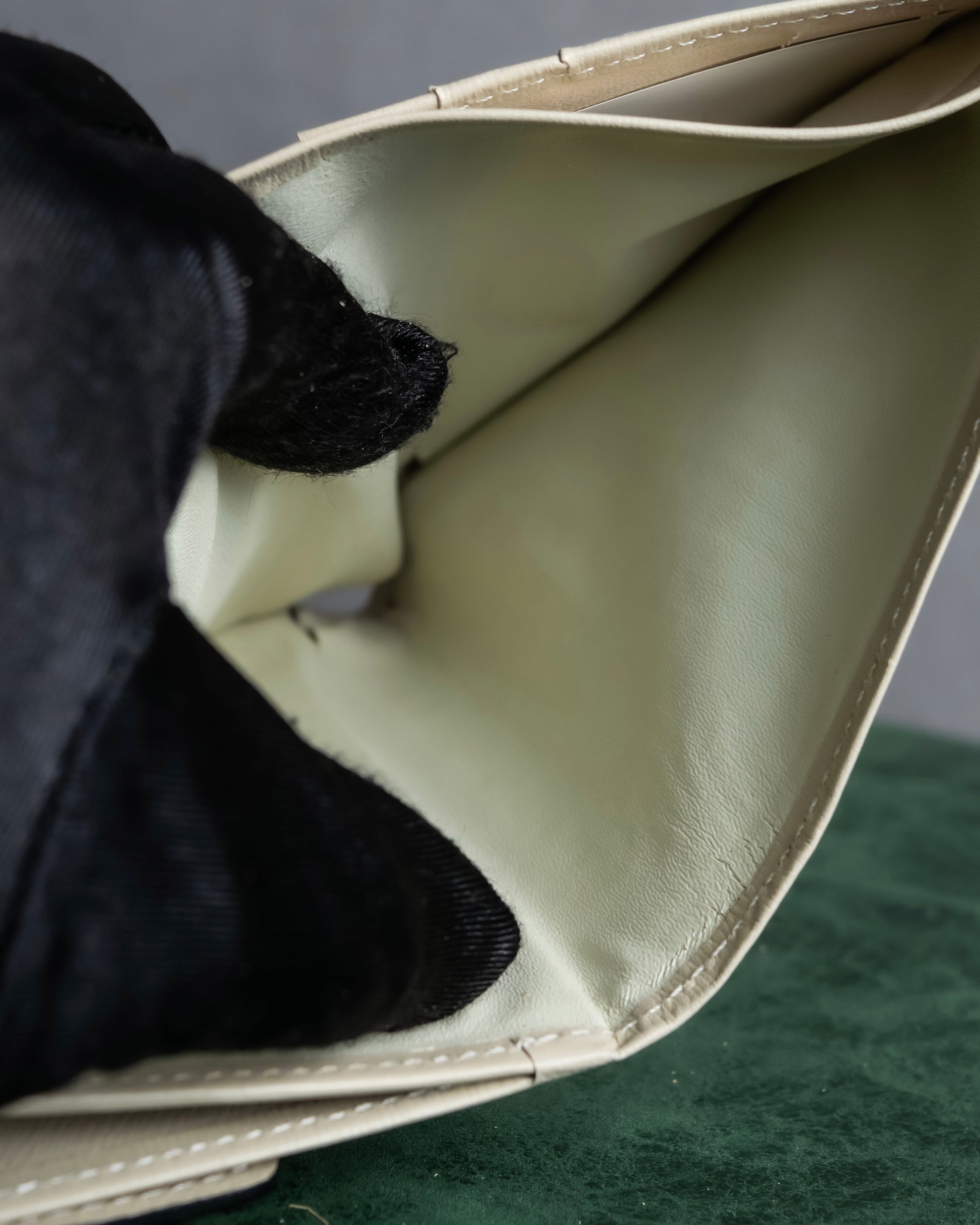 ブラウンのレザー部分は濃淡のある艶やかな仕上げが施されており、深みのある表情を感じさせる一方で、クリームカラーのレザーはマットな質感で、全体のバランスを整えながら上品さを引き立てています。