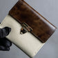 上部のブラウンカラーのレザーと下部のクリームカラーのレザーを巧みに組み合わせた配色が美しいこちらの逸品。