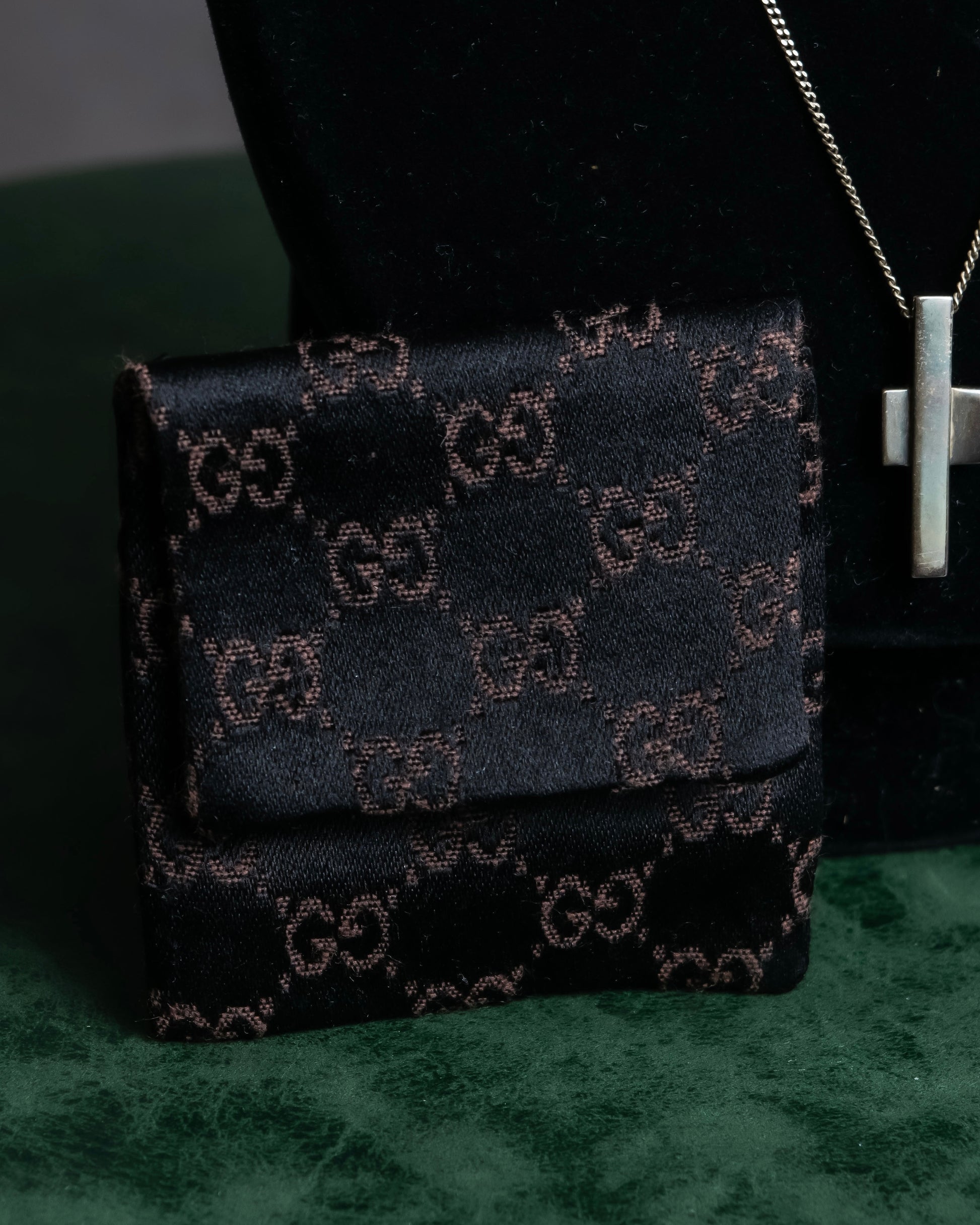 さらにトップ裏面にはGUCCIの刻印がさりげなく配されており、控えめながら確かな誇りを感じさせてくれる仕様で、シルバー925素材の持つ経年変化の美しさと合わせて、ヴィンテージだからこその奥行きある表情も魅力のひとつです。