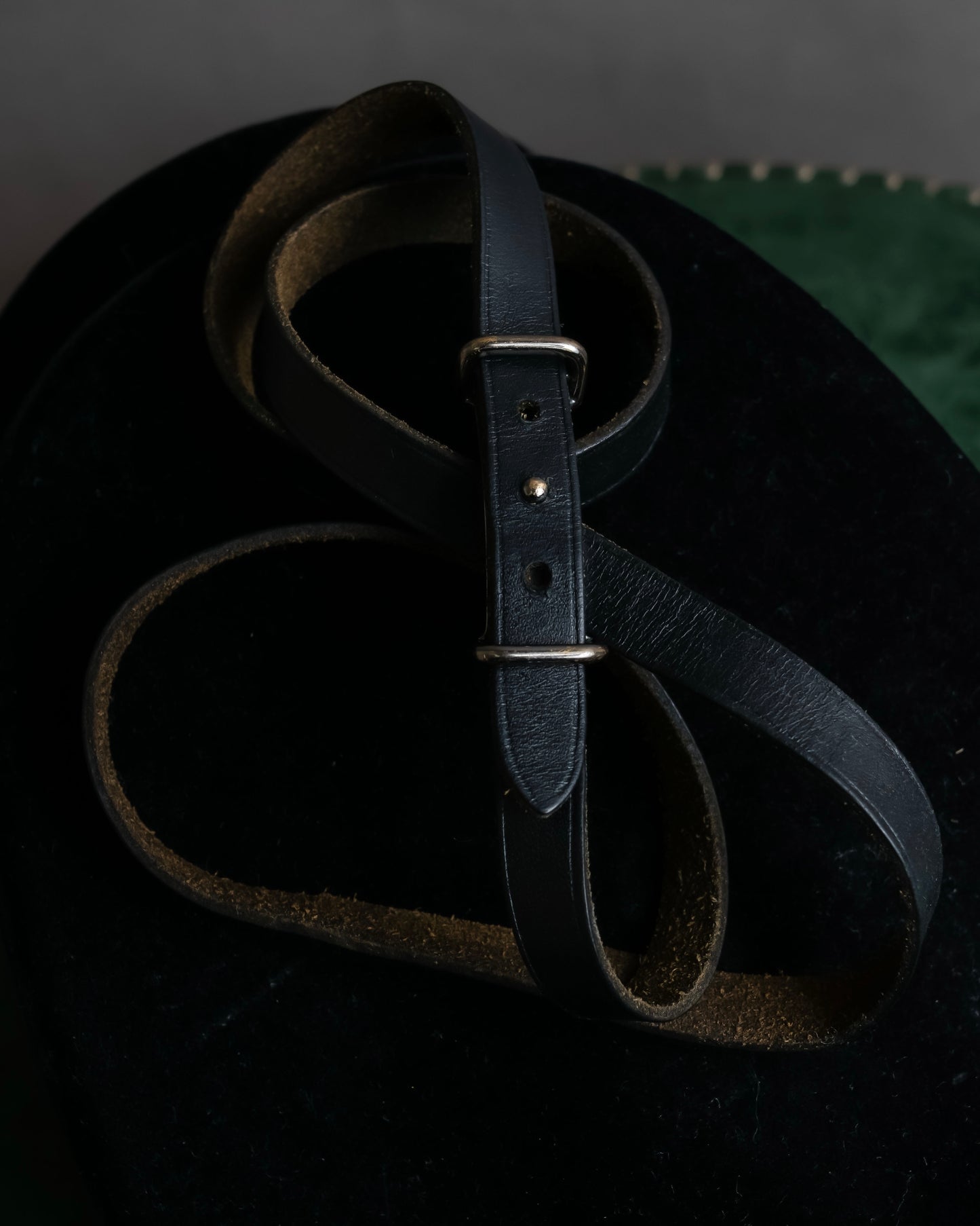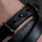 レザーの内側は使い込むほどに味わいが出てくるスエード仕上げとなっており、肌に当たる感触が柔らかく、快適にご着用いただける点も非常に優れていると言えます。バックル部分に施された真鍮色のピンも含め、留め具の機構には“軽やかさ”と“堅牢さ”が共存しており、あらゆる動きの中でもブレスレットの美しさが保たれ続ける設計と言えます。