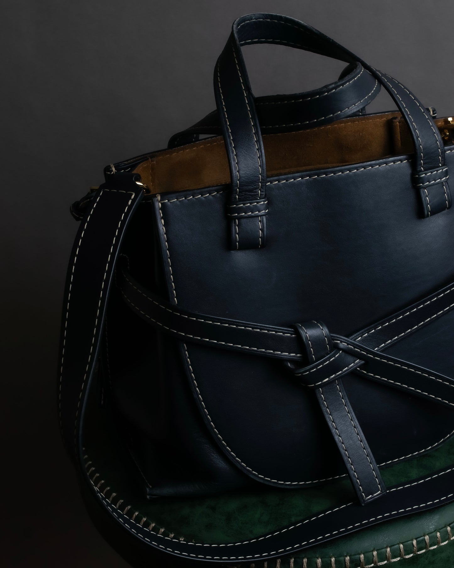 バッグの名称の由来ともなっている“ゲート=門”を象徴するフロントのベルトディテールは、ただの装飾ではなく、ブランドの「結び目」への哲学を体現した構造的要素であり、あえて不完全に見せた結びが「未完成の美」を静かに語りかけてきます。その佇まいは、熟練の革職人でなければ表現し得ない緊張感と、柔らかなレザーの豊かな可塑性が共存しており、工芸品のような奥行きを纏っているのが特徴です。