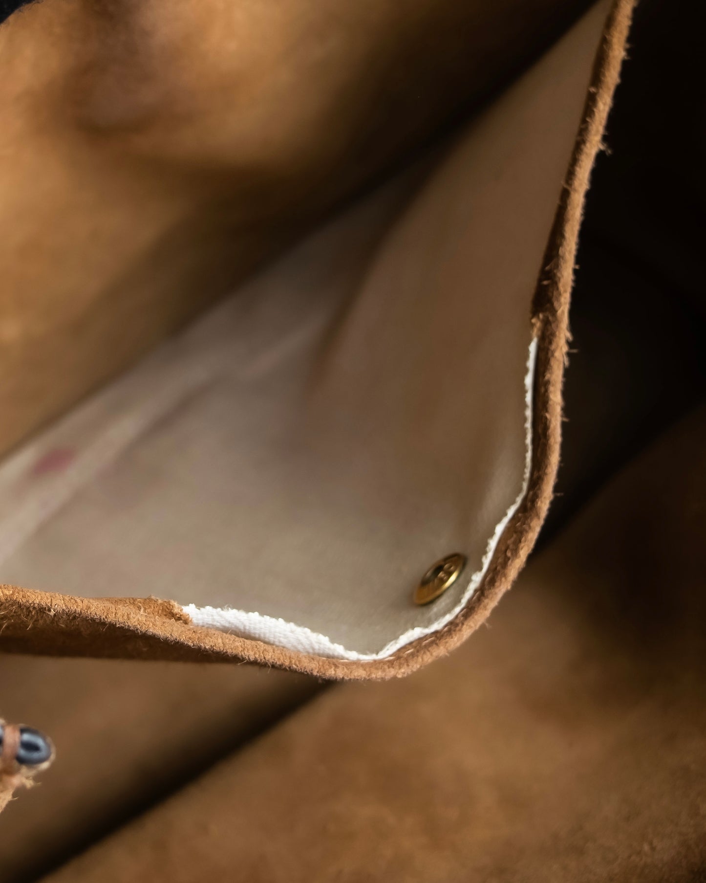 トップハンドルとしての品格はもちろんのこと、付属する幅広のショルダーストラップにより、クロスボディとしても使用可能。スタイリングやシーンに応じて表情を変えるその設計は、まさに「ラグジュアリー=多様性の受容」であることを証明してくれます。内側は贅沢なスエード仕上げとなっており、明るいキャメルカラーがレザーの黒と美しいコントラストを成し、開閉の所作さえも美意識へと昇華するデザインです。