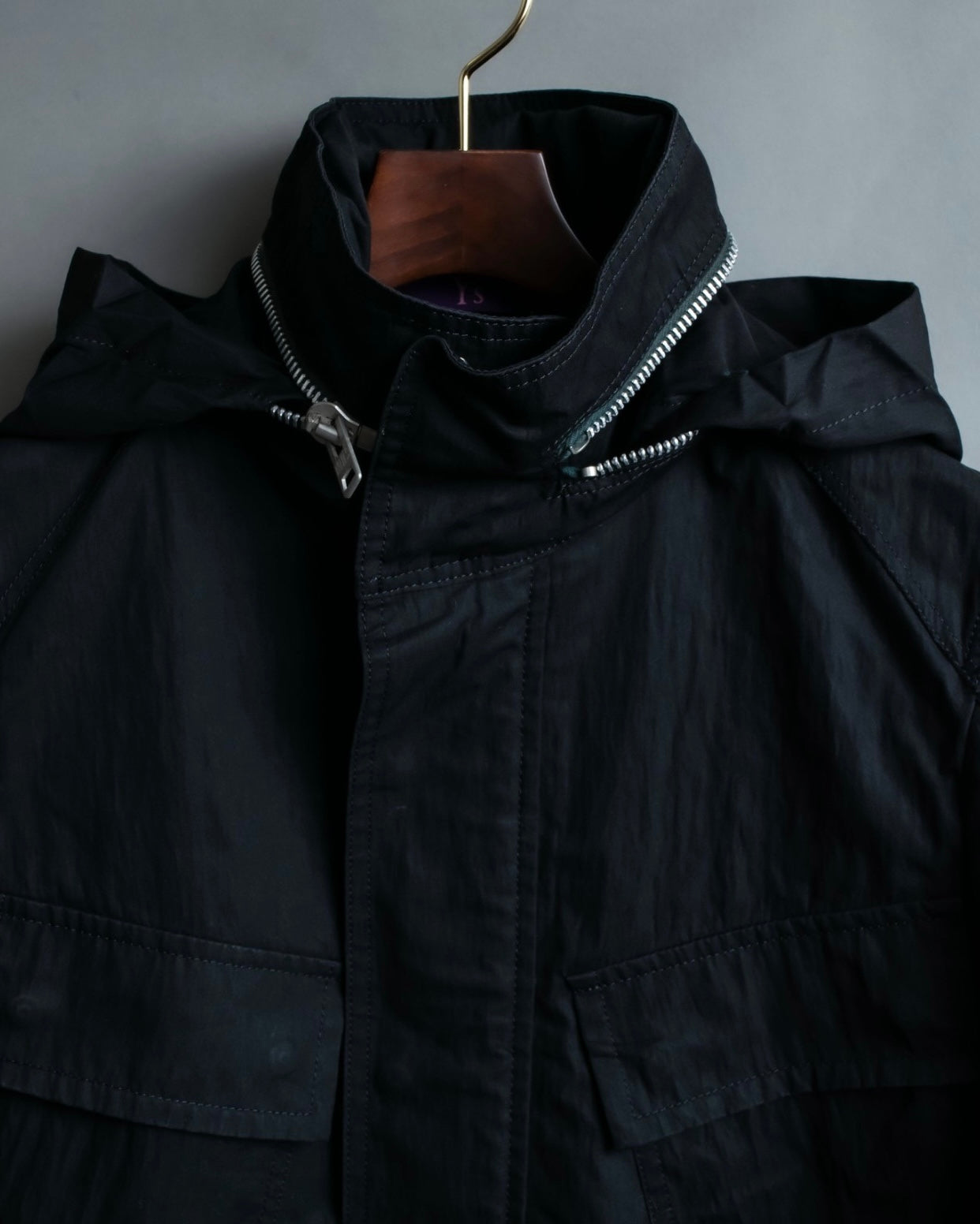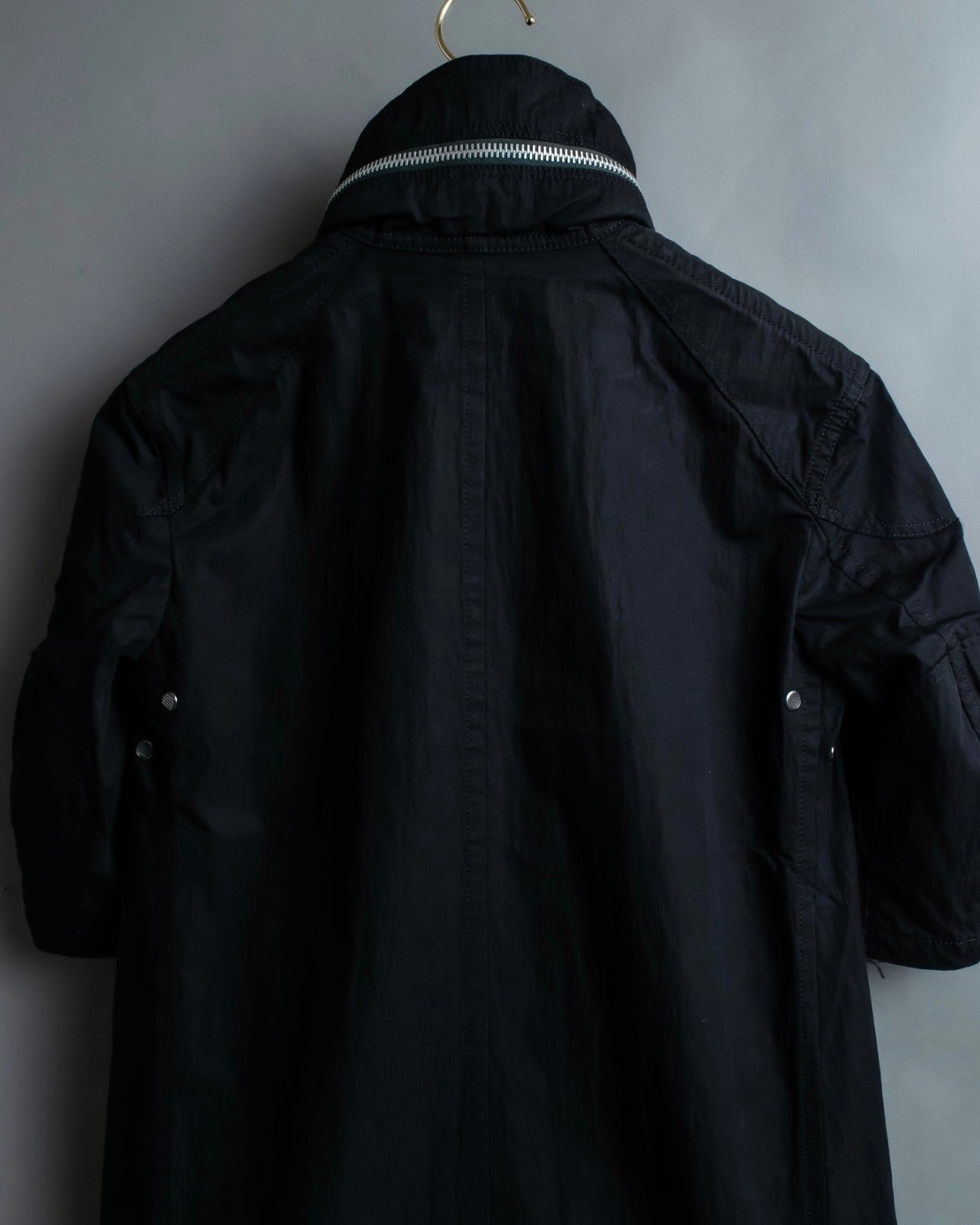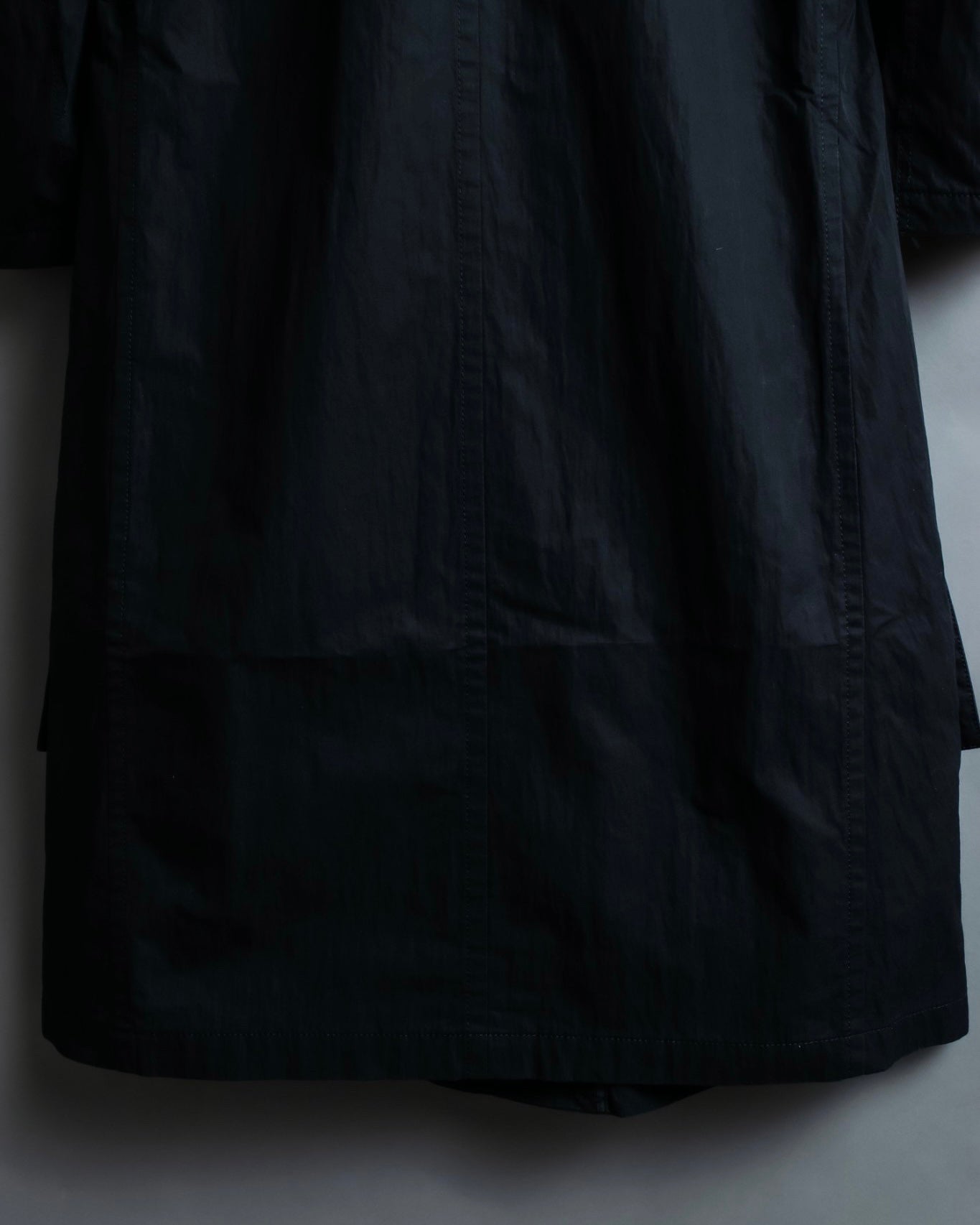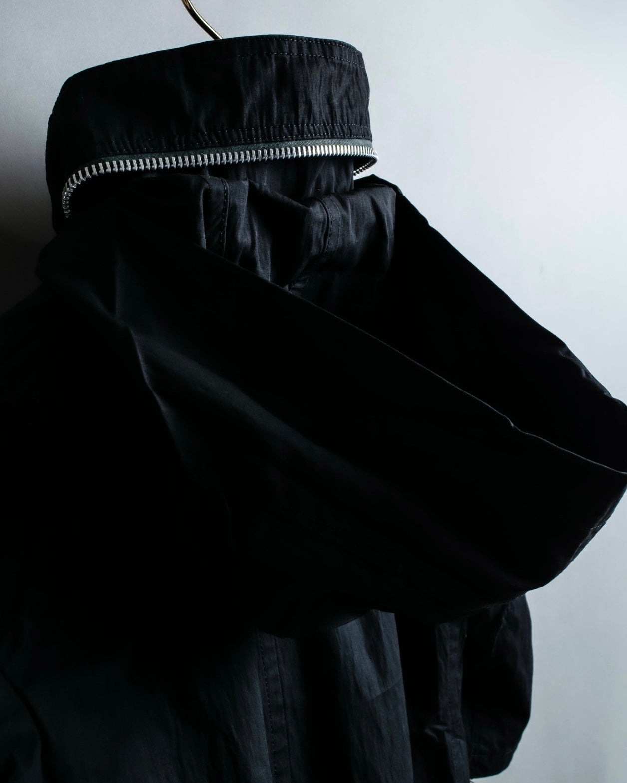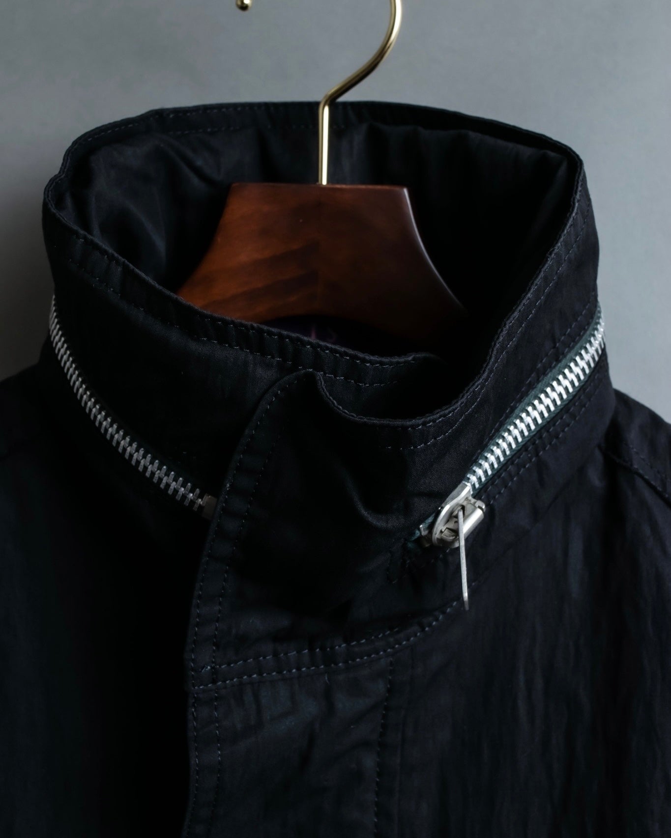 ダブルジップ、フードジップ、サイドスナップなどテック心をくすぐる応用性の高さを持ち味としており、それらのギミックをY'sの美しいIシルエットに落とし込んだデザイン。