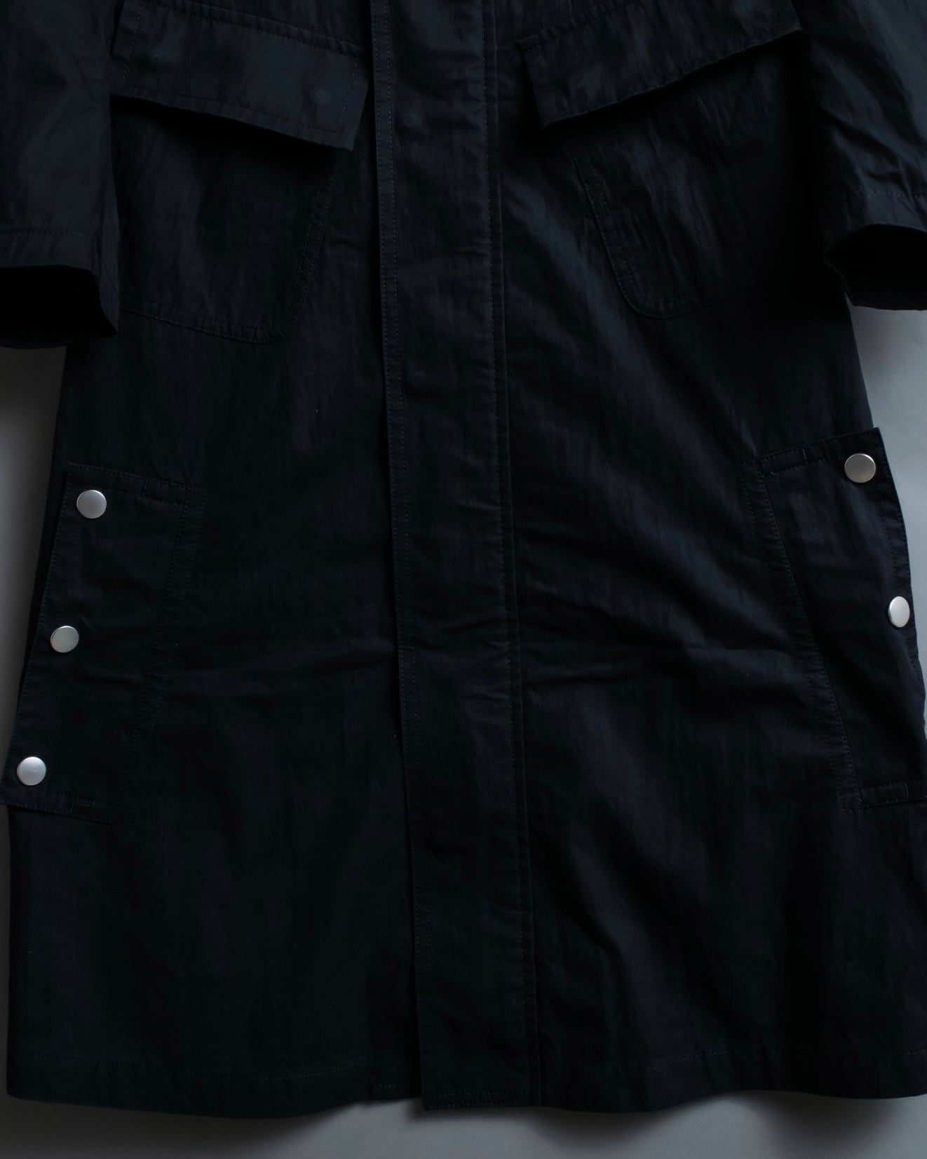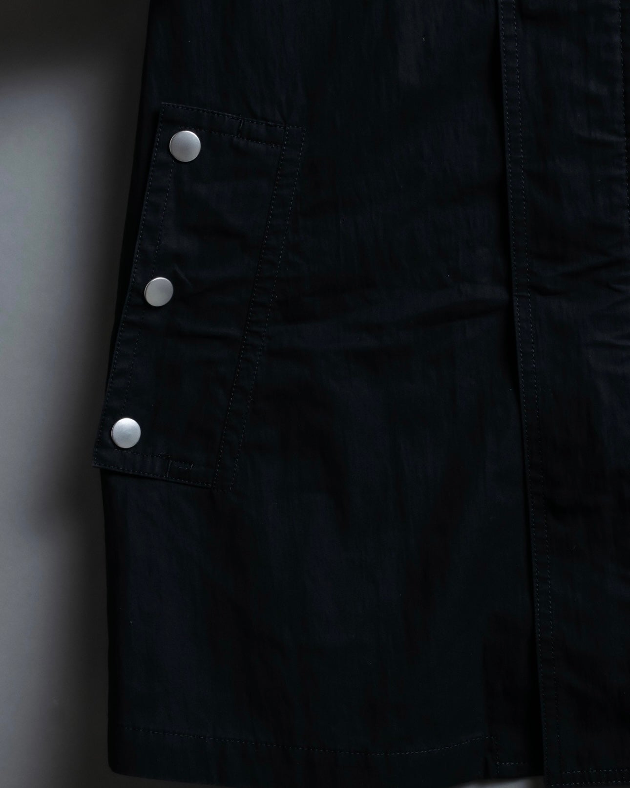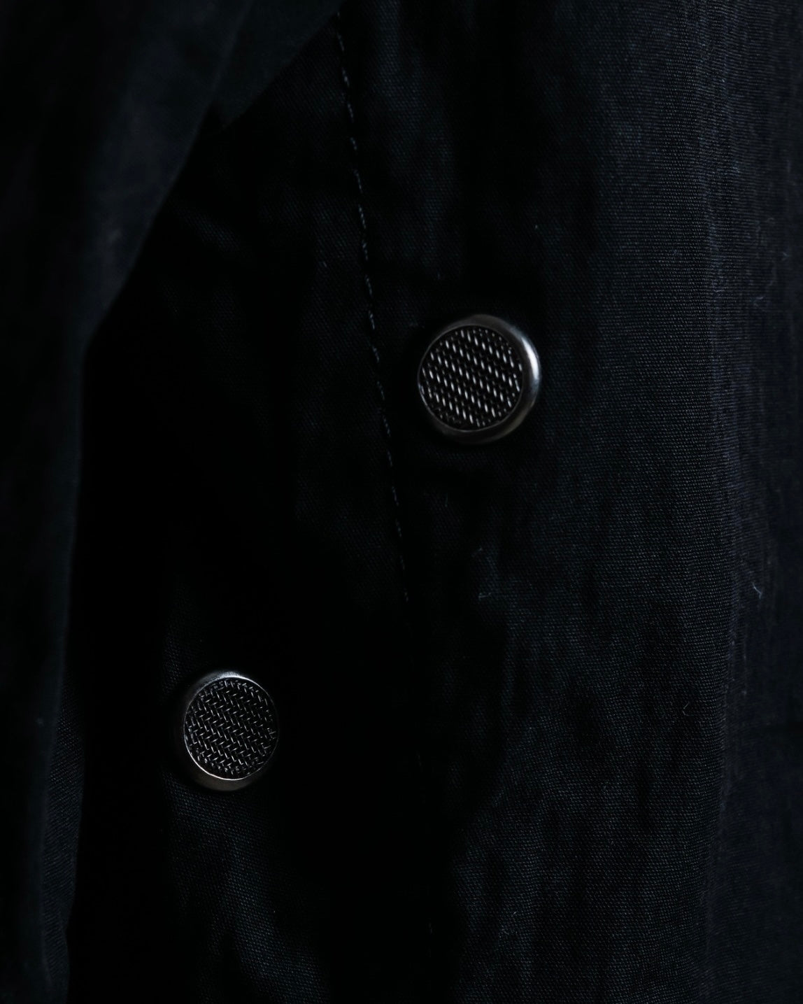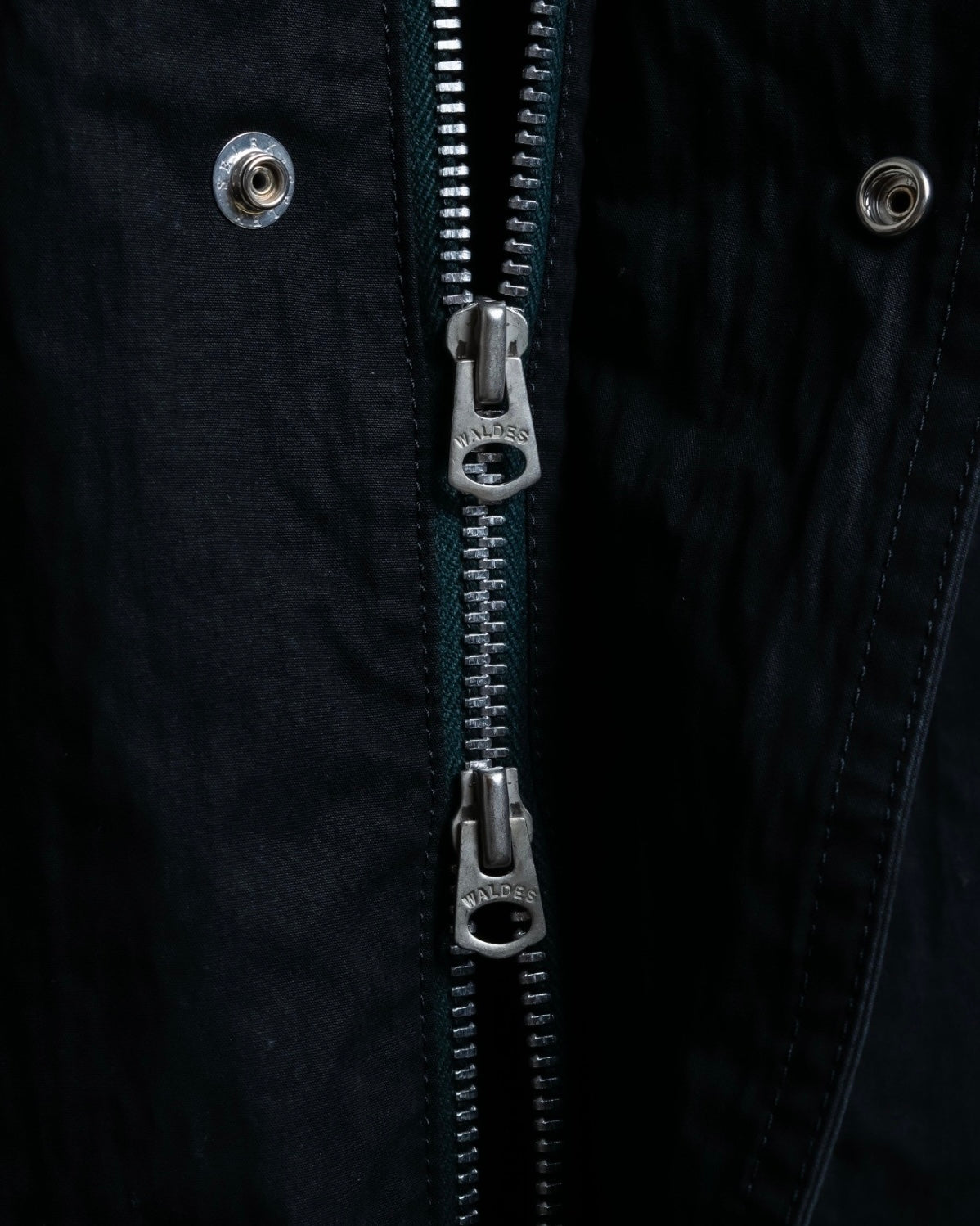 ダブルジップ、フードジップ、サイドスナップなどテック心をくすぐる応用性の高さを持ち味としており、それらのギミックをY'sの美しいIシルエットに落とし込んだデザイン。