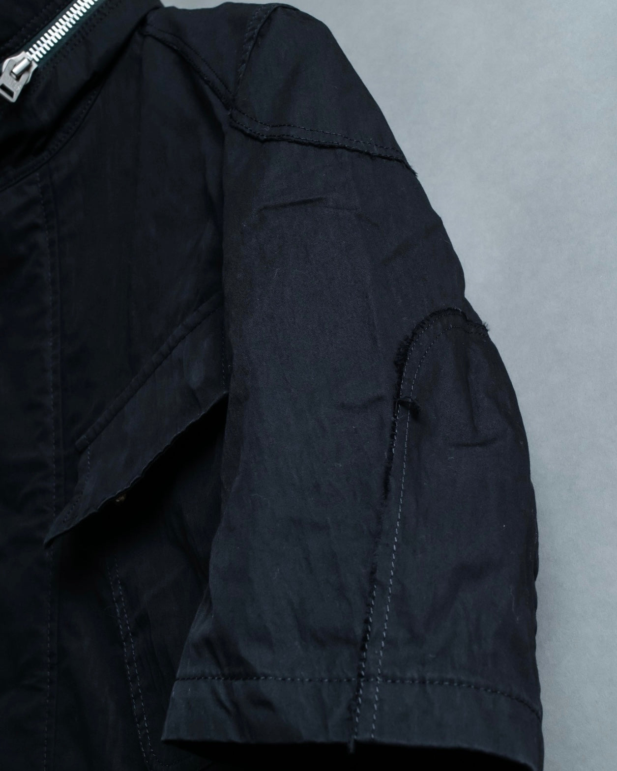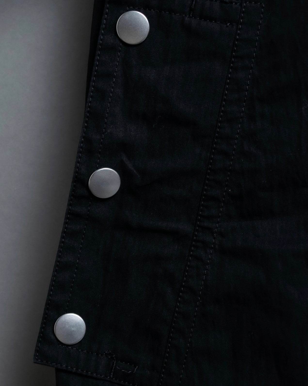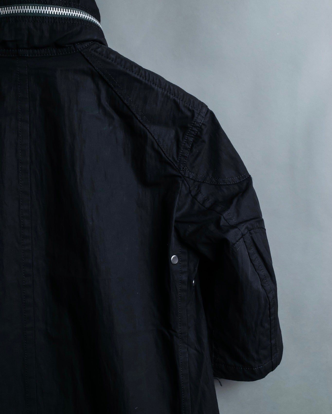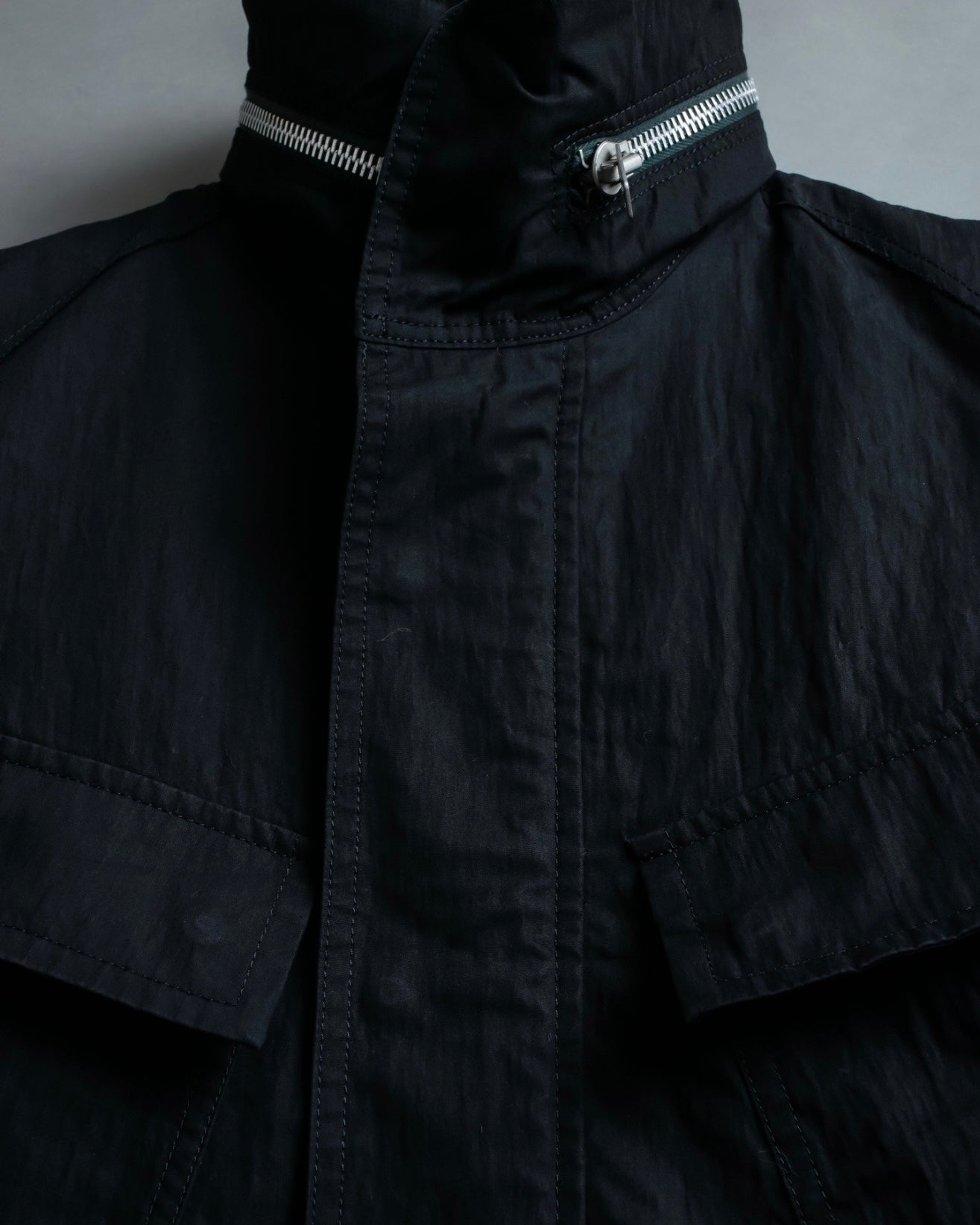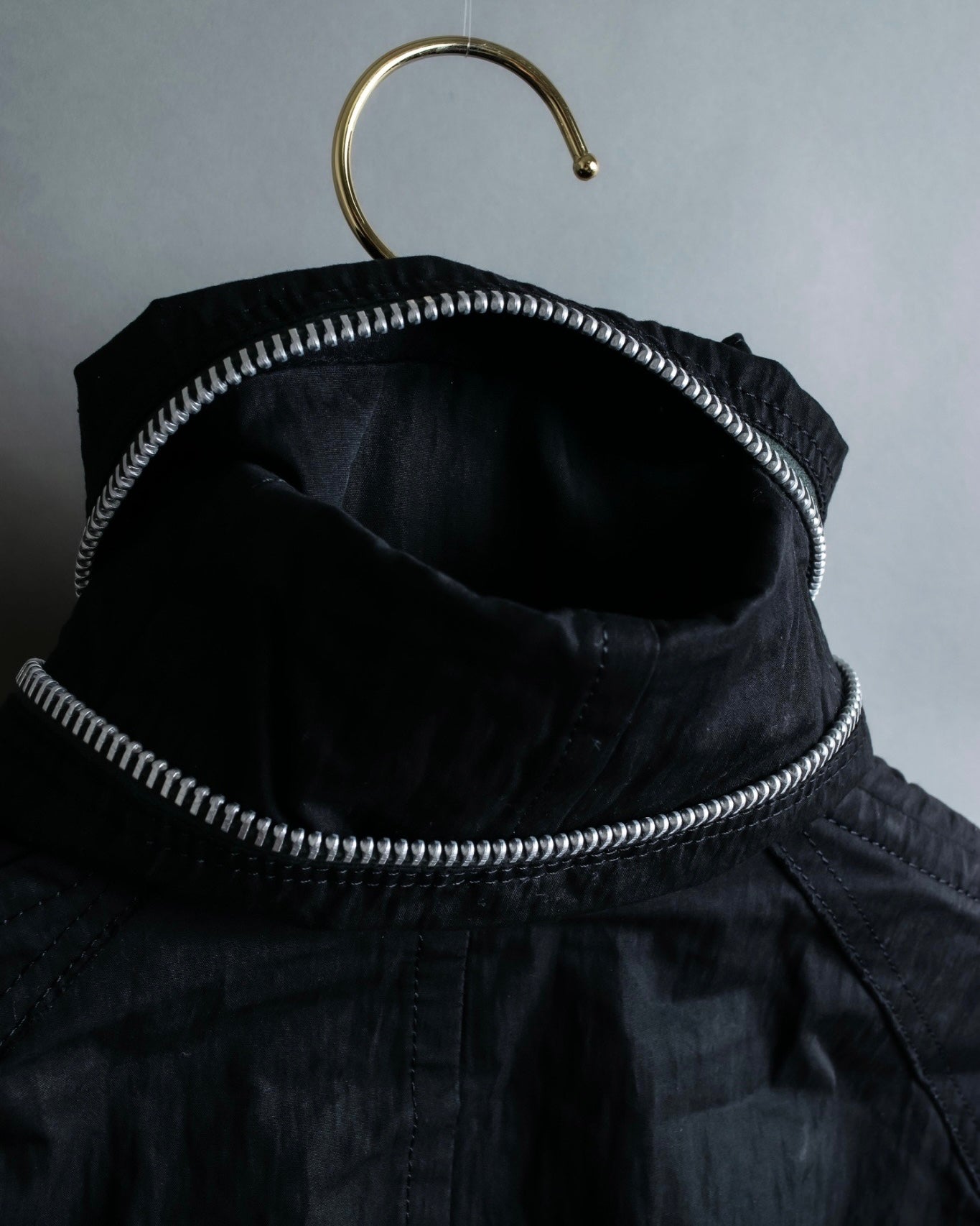 ダブルジップ、フードジップ、サイドスナップなどテック心をくすぐる応用性の高さを持ち味としており、それらのギミックをY'sの美しいIシルエットに落とし込んだデザイン。