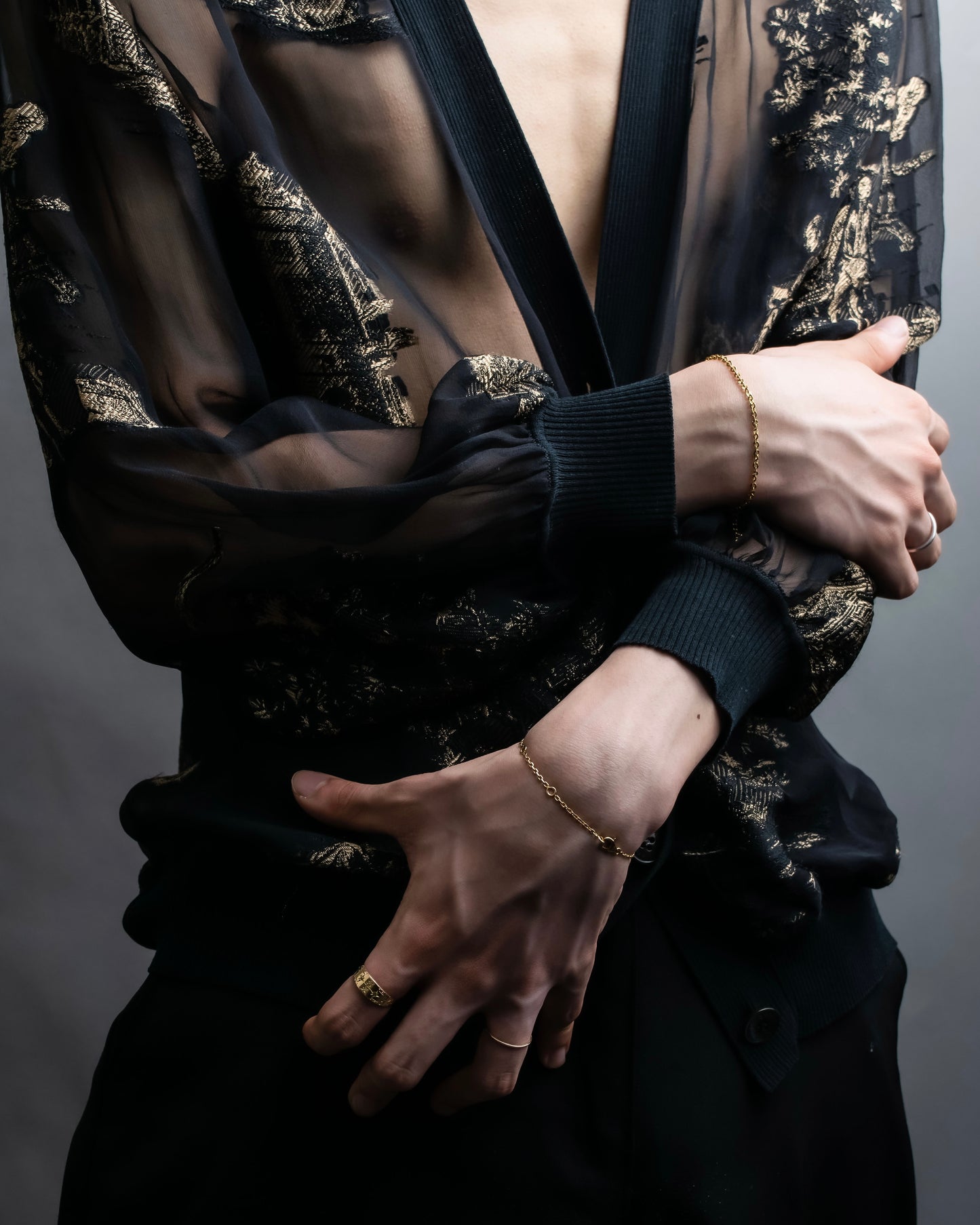 スタイリングとしては、こちらの逸品の持つラグジュアリーな風合いと透け感が持つ程良い色気をより引き立たせる様な、