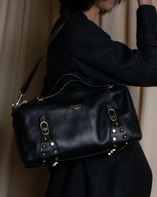 "YVES SAINT LAURENT" 80's-90's Logo engraved tassel detail bag -