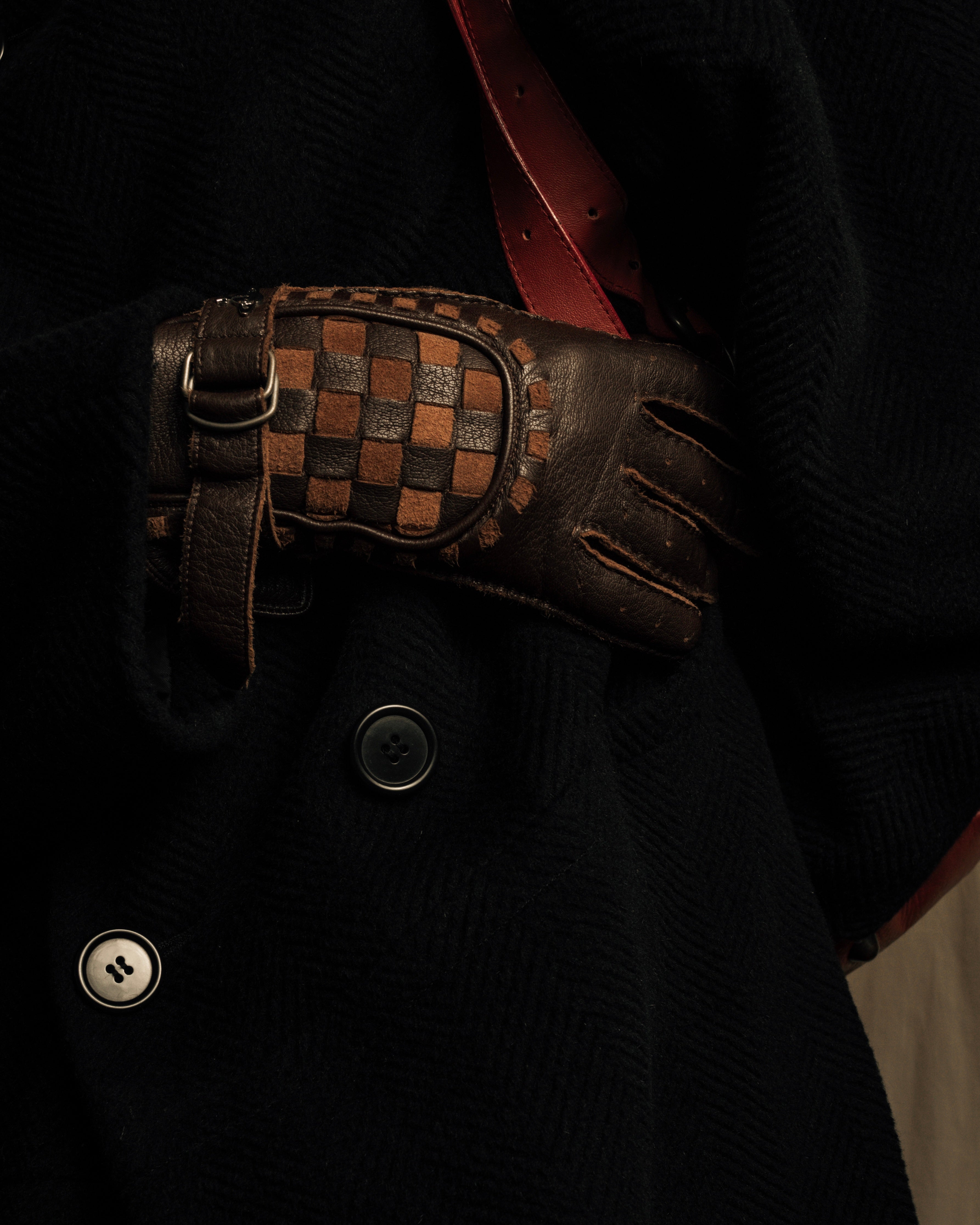 "Vivienne Westwood" Orb design checker panel pattern leather gloves -