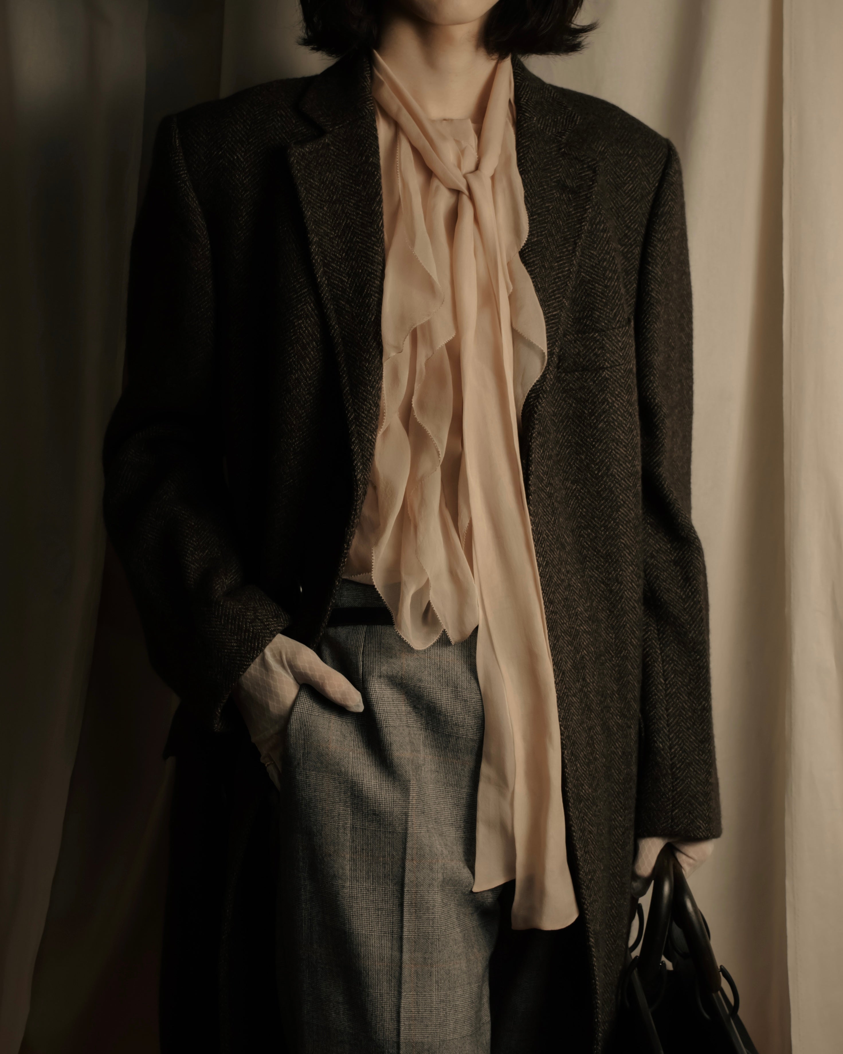 "Yves Saint Laurent Rive Gauche" Fly front tweed chester coat