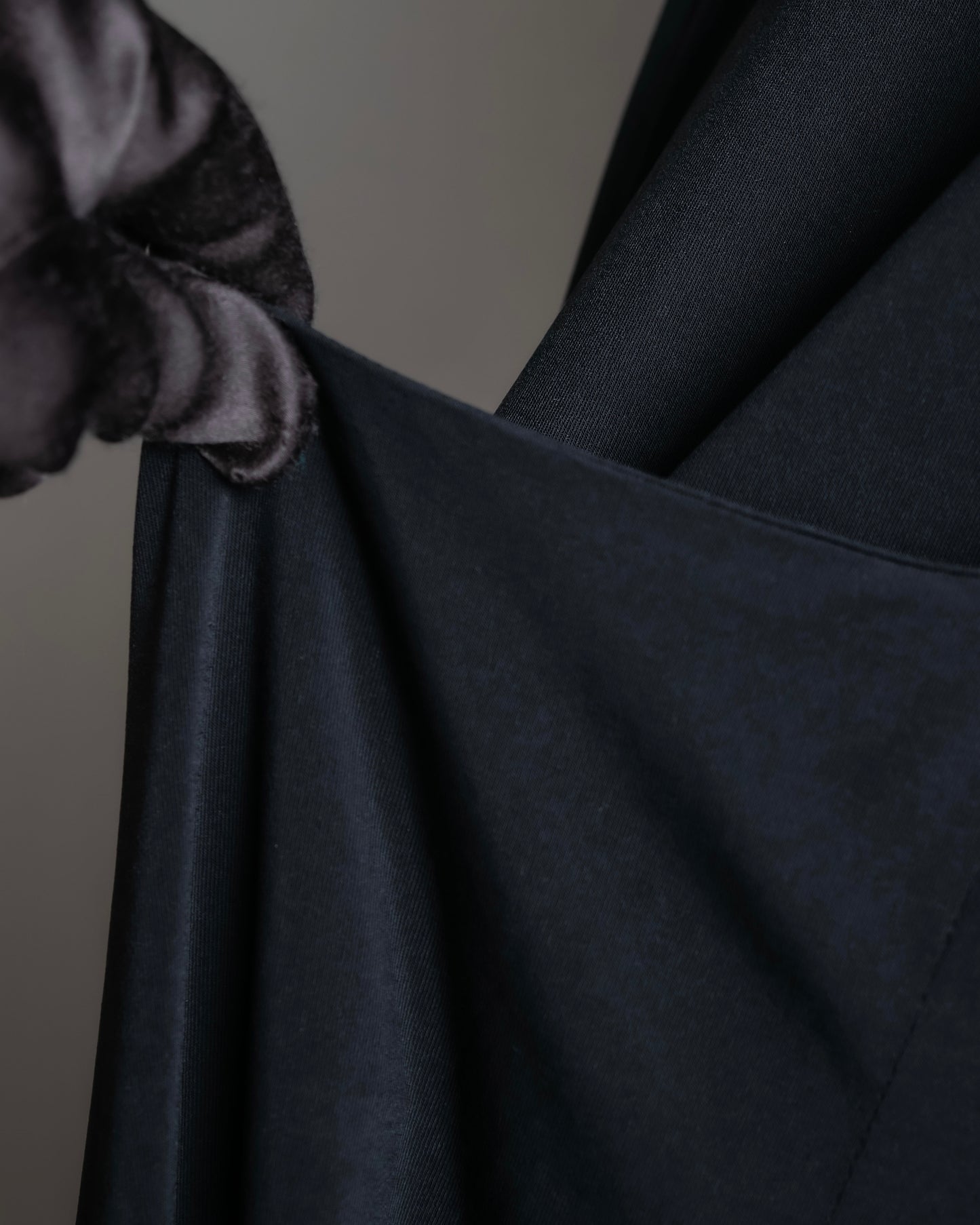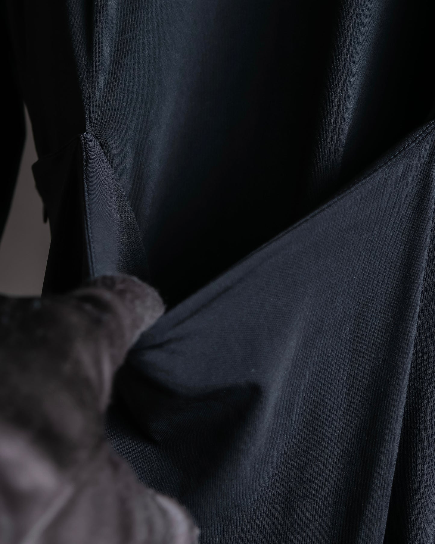 スタイリングとしては、SSはこちらのドレスを主役に、ボリュームのあるブーツと小柄なバックを合わせて上品なスタイリングを、AWはオーバーサイズなジャケットやコートなどを羽織って、ボリューム感のあるバックを合わせていただくと通年を通してアレンジを楽しみいただける逸品となっておりますのでぜひこの機会に。