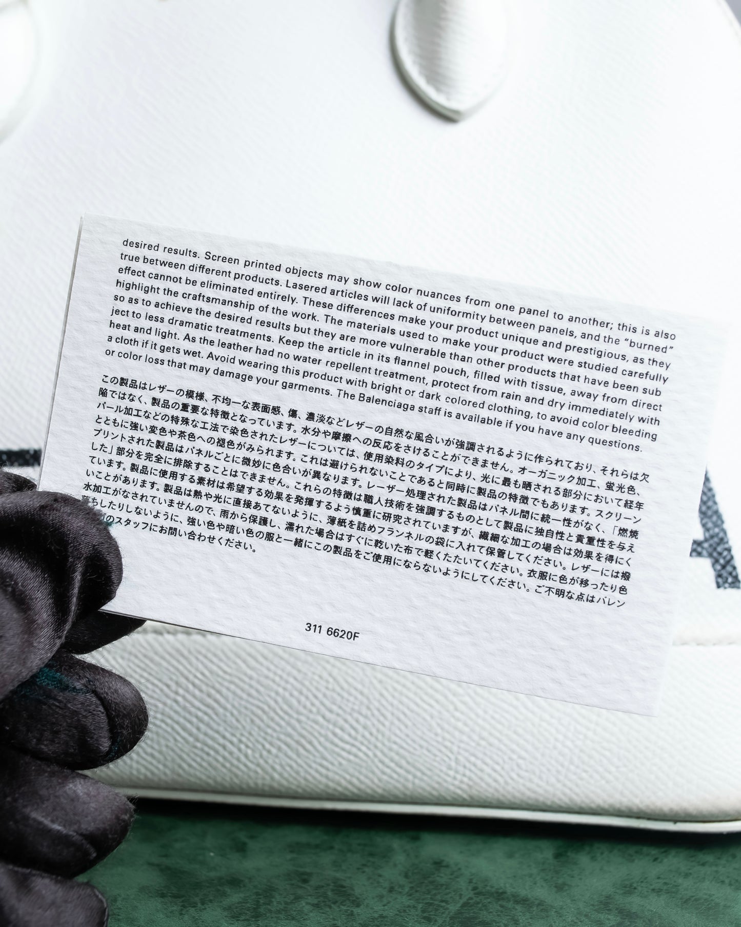 サイドにあしらわれた南京錠チャームや、マチに施されている底鋲などのシルバーのパーツ使いには、バレンシアガらしいファッショナブルなアプローチを感じて頂けます。