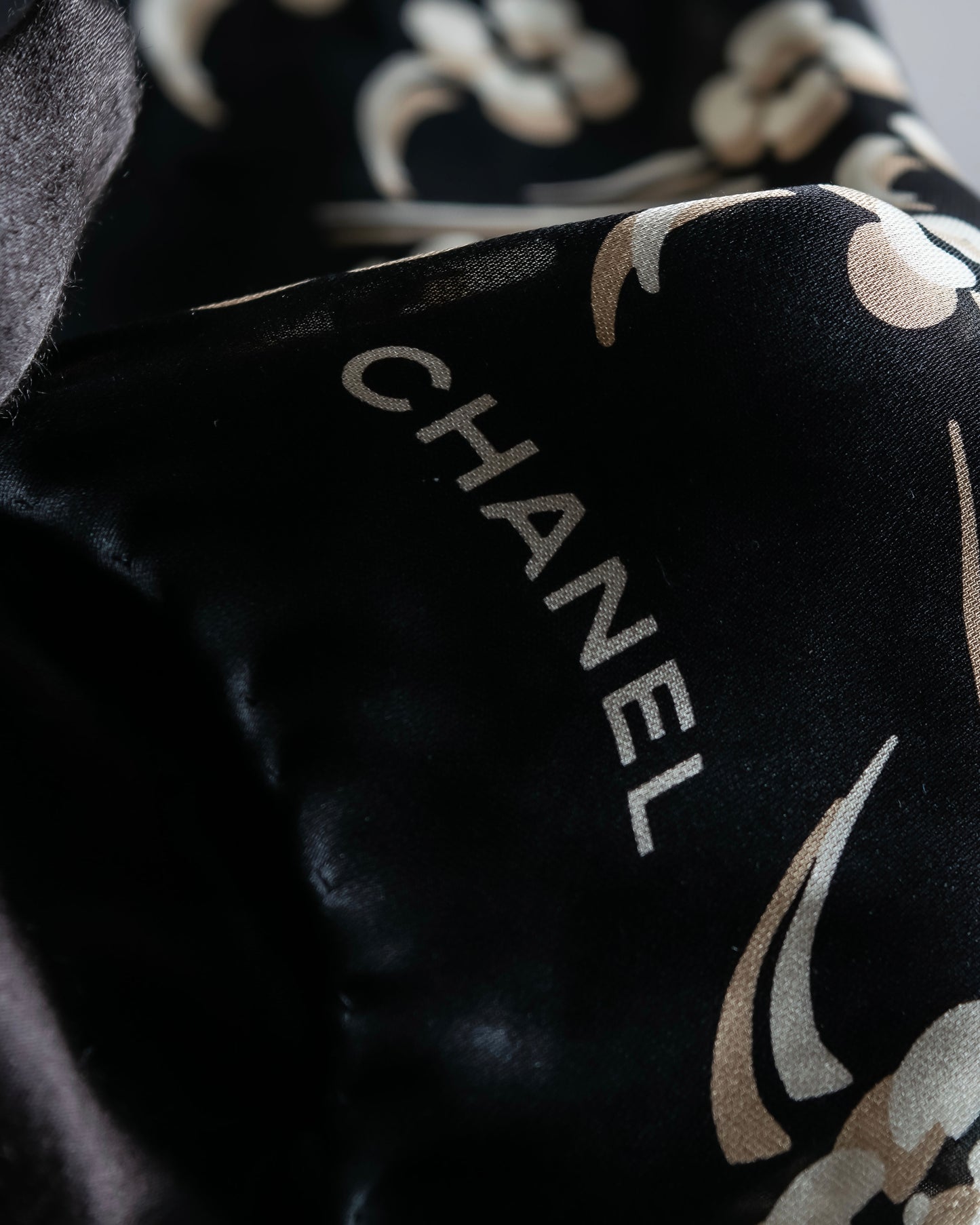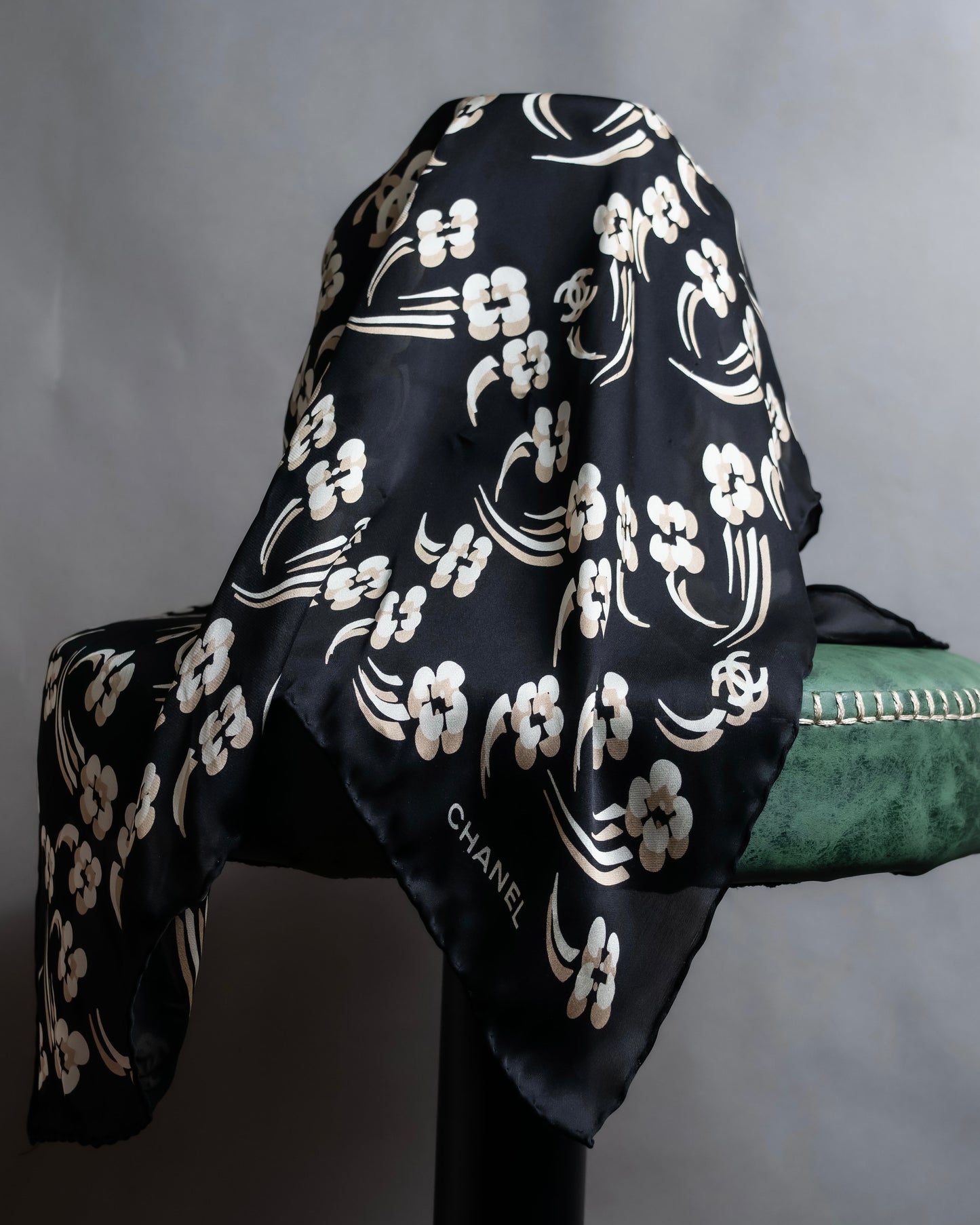 "CHANEL" 90's Square icon logo pattern sheer silk scarf