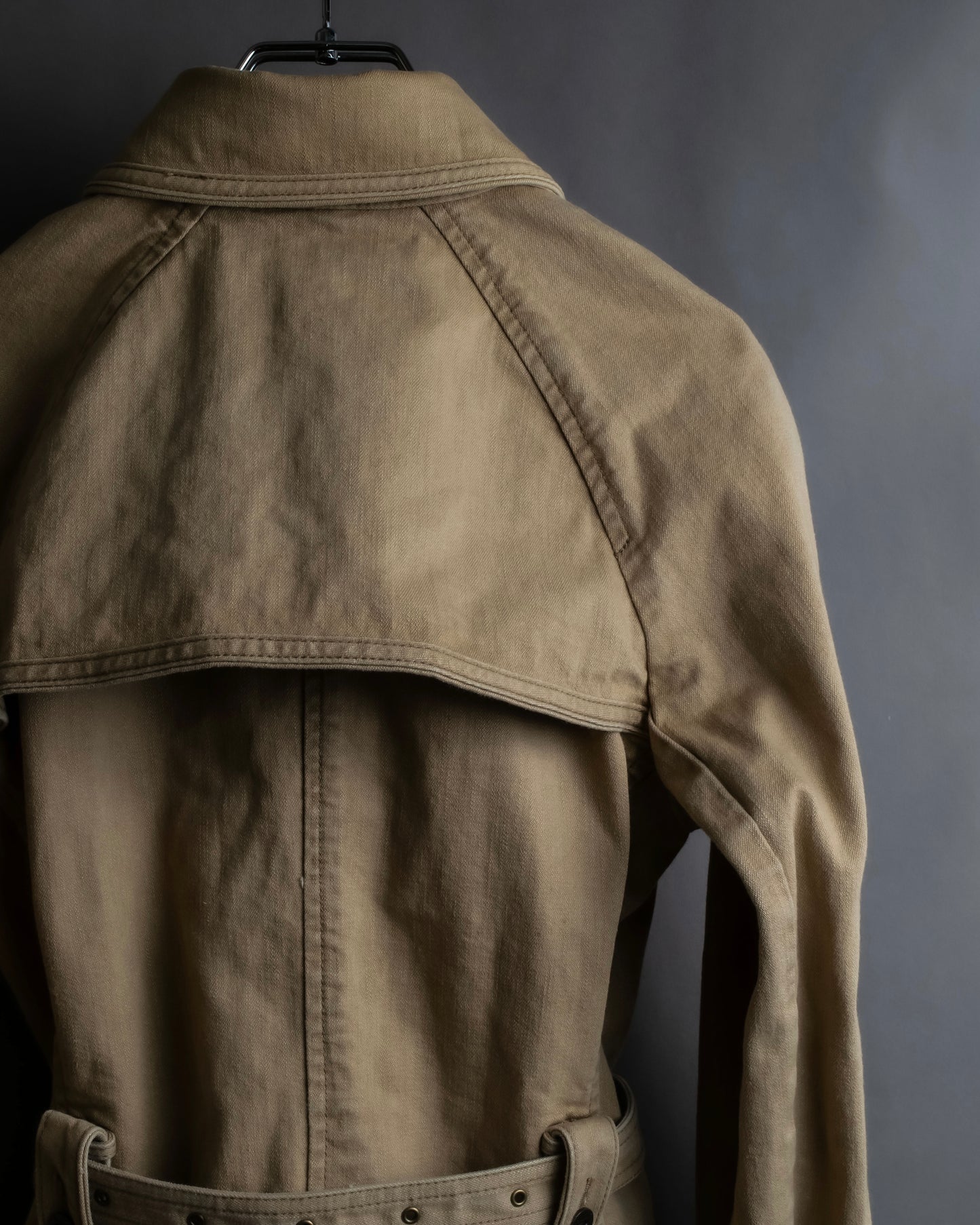 このアイテムをおすすめしたいのは、ベーシックなトレンチにはもう満足していて、もう一歩先の“素材”や“構造”で差のつくアウターをお探しの方やトラッド感をキープしながらも、どこか土っぽく、ナチュラルな余白を残したスタイリングを楽しみたい方に最適な逸品となっております。