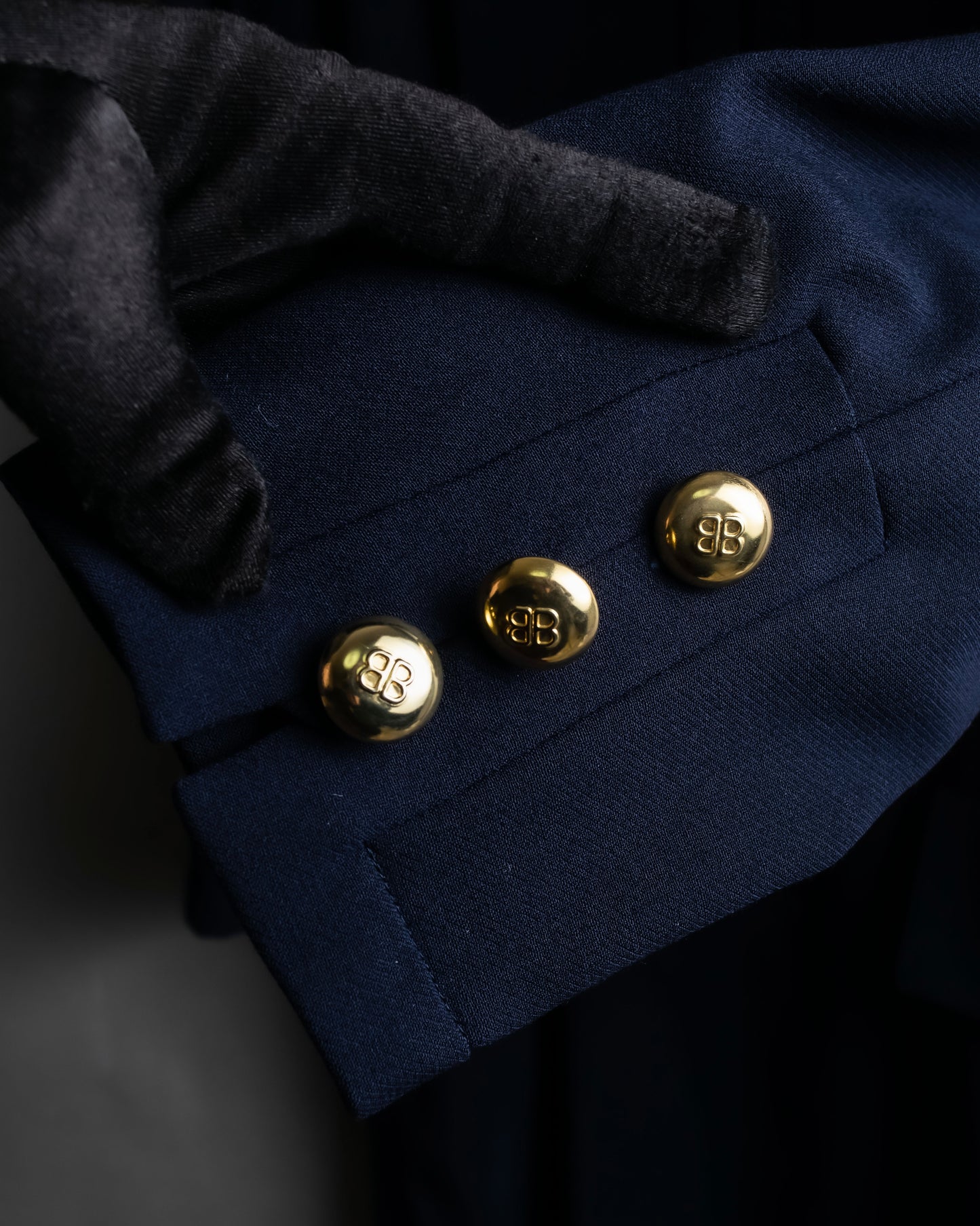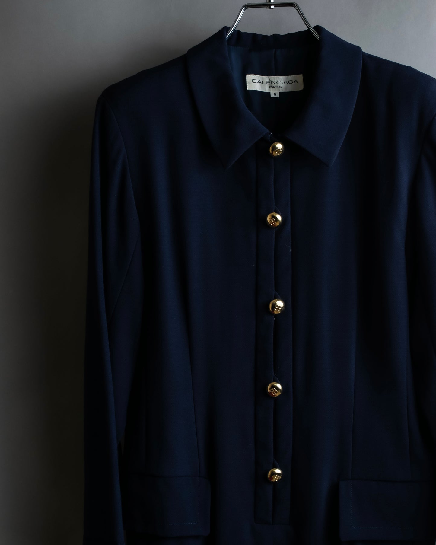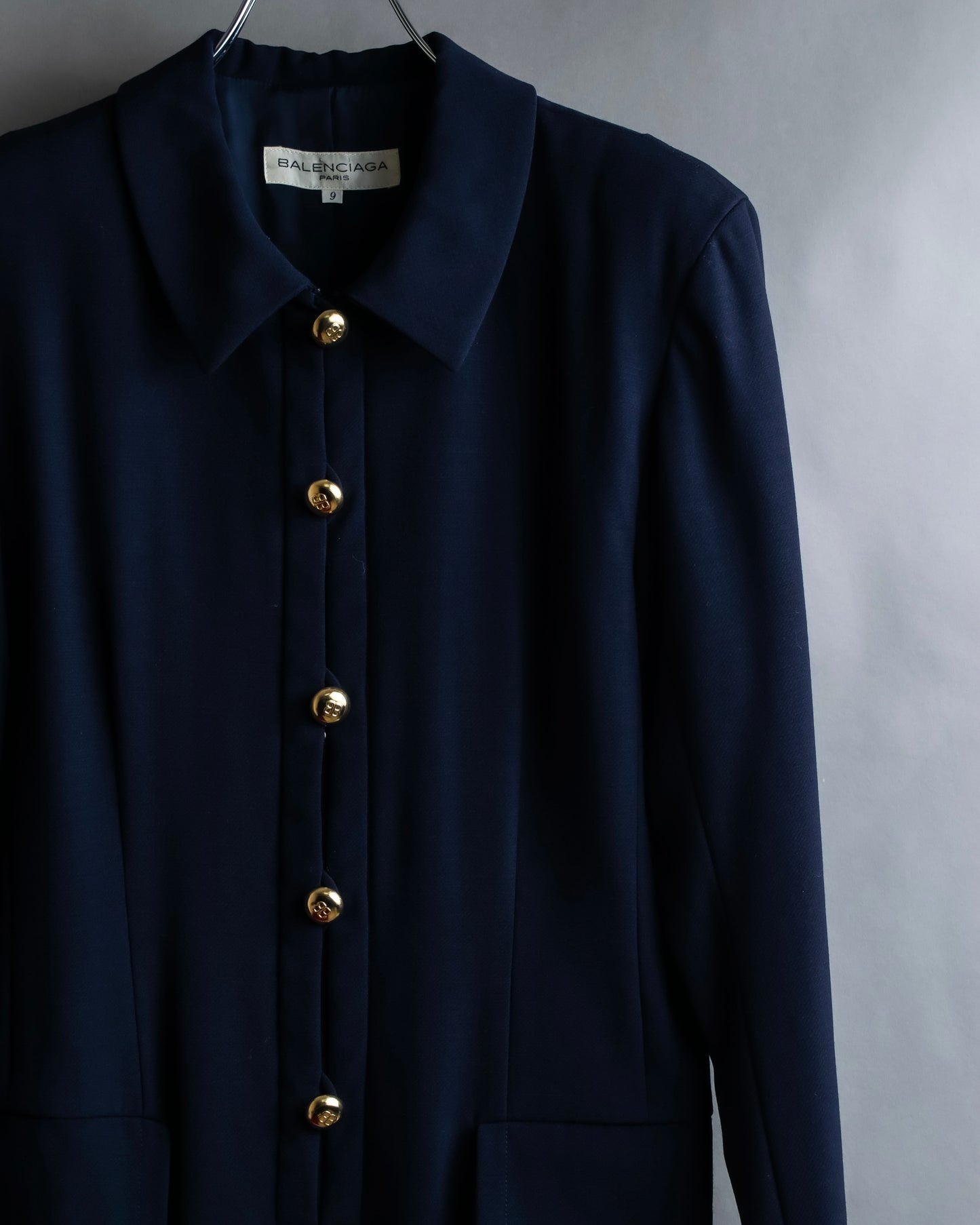 更に、こちらの逸品の特別なポイントとして、ボタンの裏にスナップ留めを仕込むことで、見た目の美しさと機能性を両立している点で、着脱のしやすさに加え、前立てが崩れず美しいラインを保てる様に工夫が施されているのです。その仕立ての丁寧さが、Balenciagaが長年培ってきたオートクチュールの精神を静かに物語っておりますね。