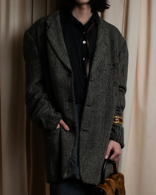 それにより、ヴィンテージ感がありつつも現代のニュアンスに適合する雰囲気となっているため、シンプルにボリュームのあるボトムスかスラックスにシャツタイと合わせてカジュアルなスタイリングをお勧めしております。