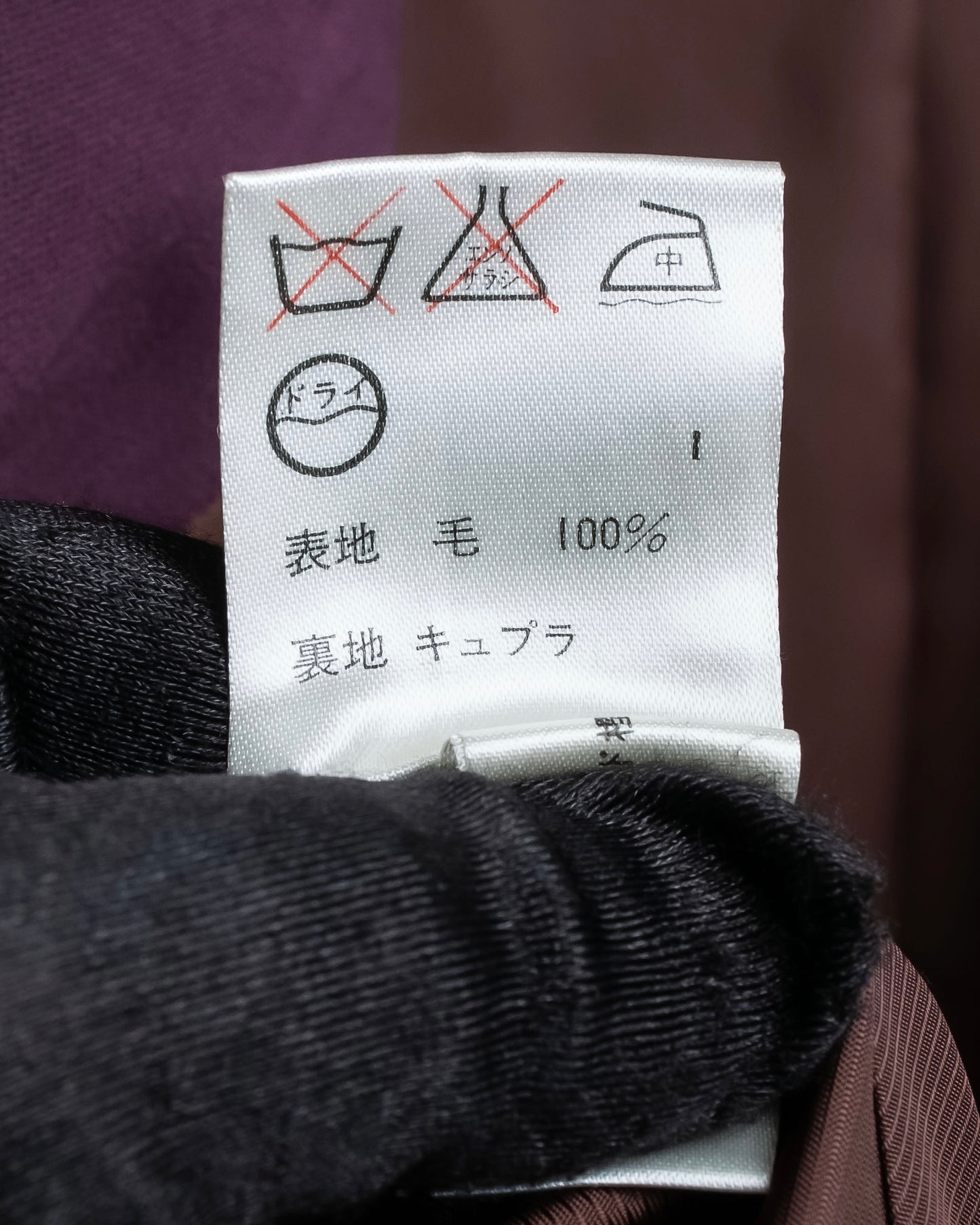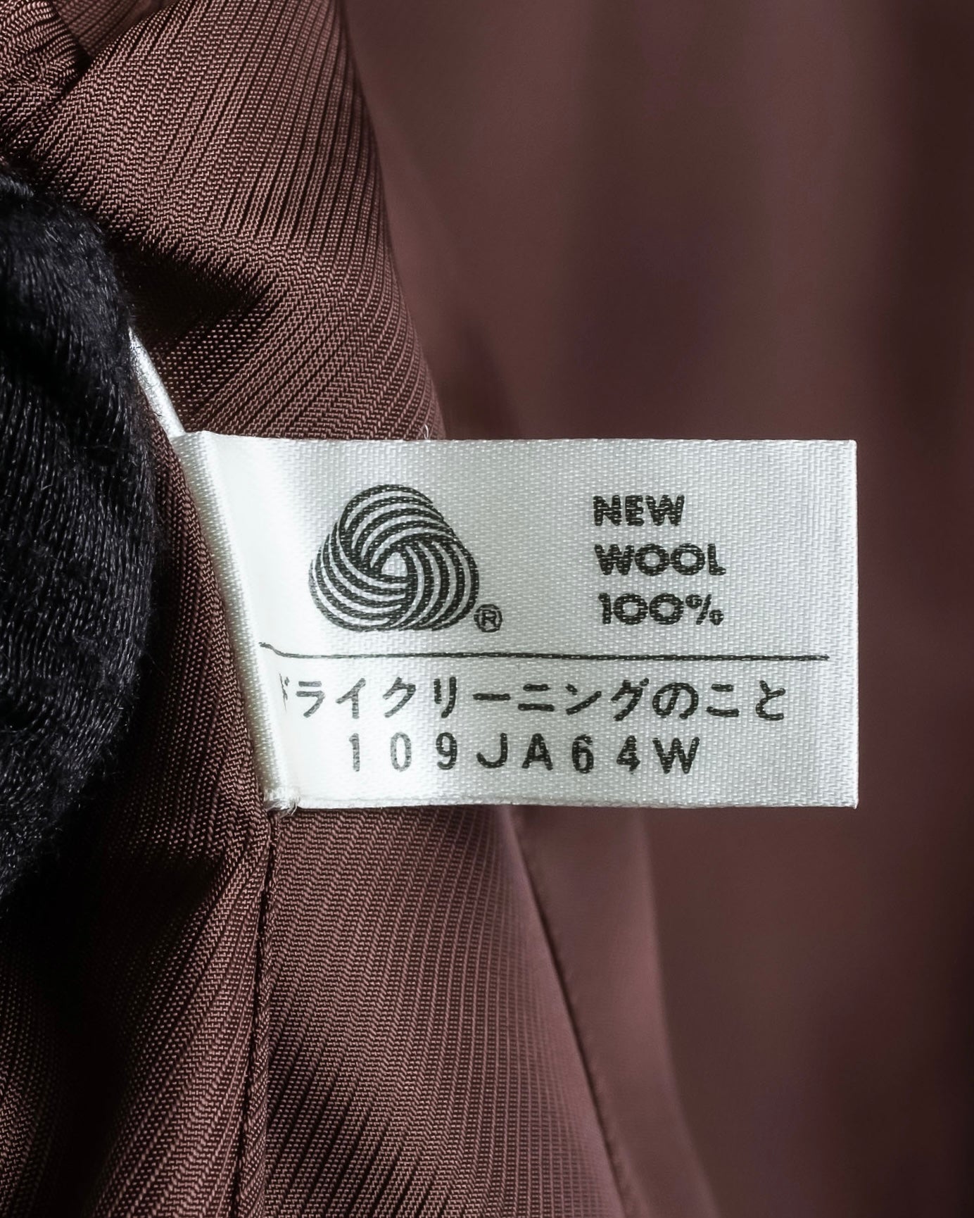しなやかに艶を帯びたウール100%のボディは、光を柔らかく吸い込みながらも深みある色彩を際立たせ、ゴルチエらしい挑戦的な美学が伝統的なフォルムに巧みに落とし込まれています。また、ブラウンのライニングには光沢感のあるドットモチーフが施されており、着る人だけが知る贅沢なディテールとして、日常にささやかな高揚感を添えてくれますね。