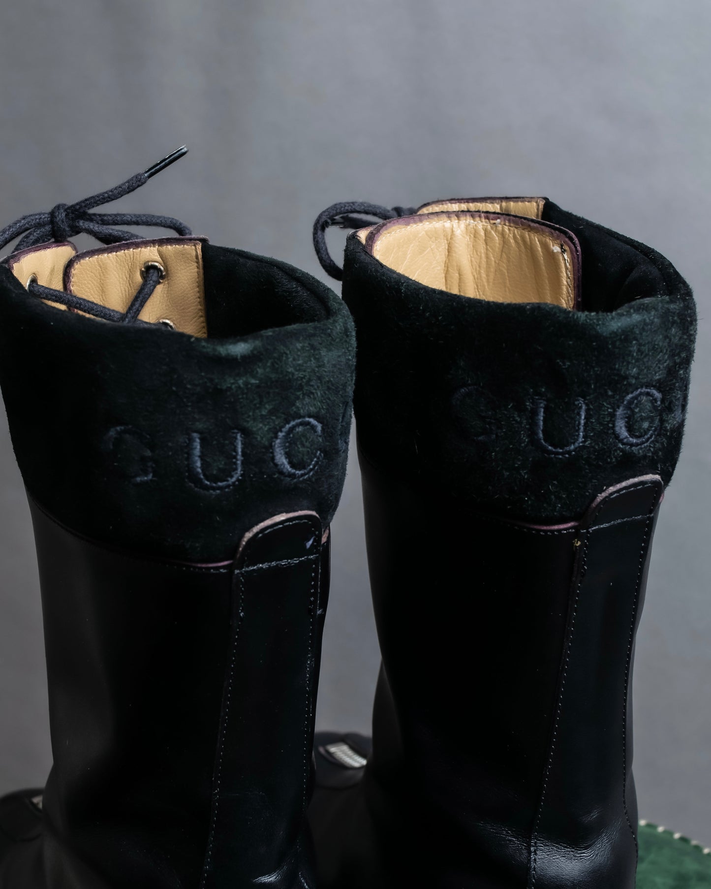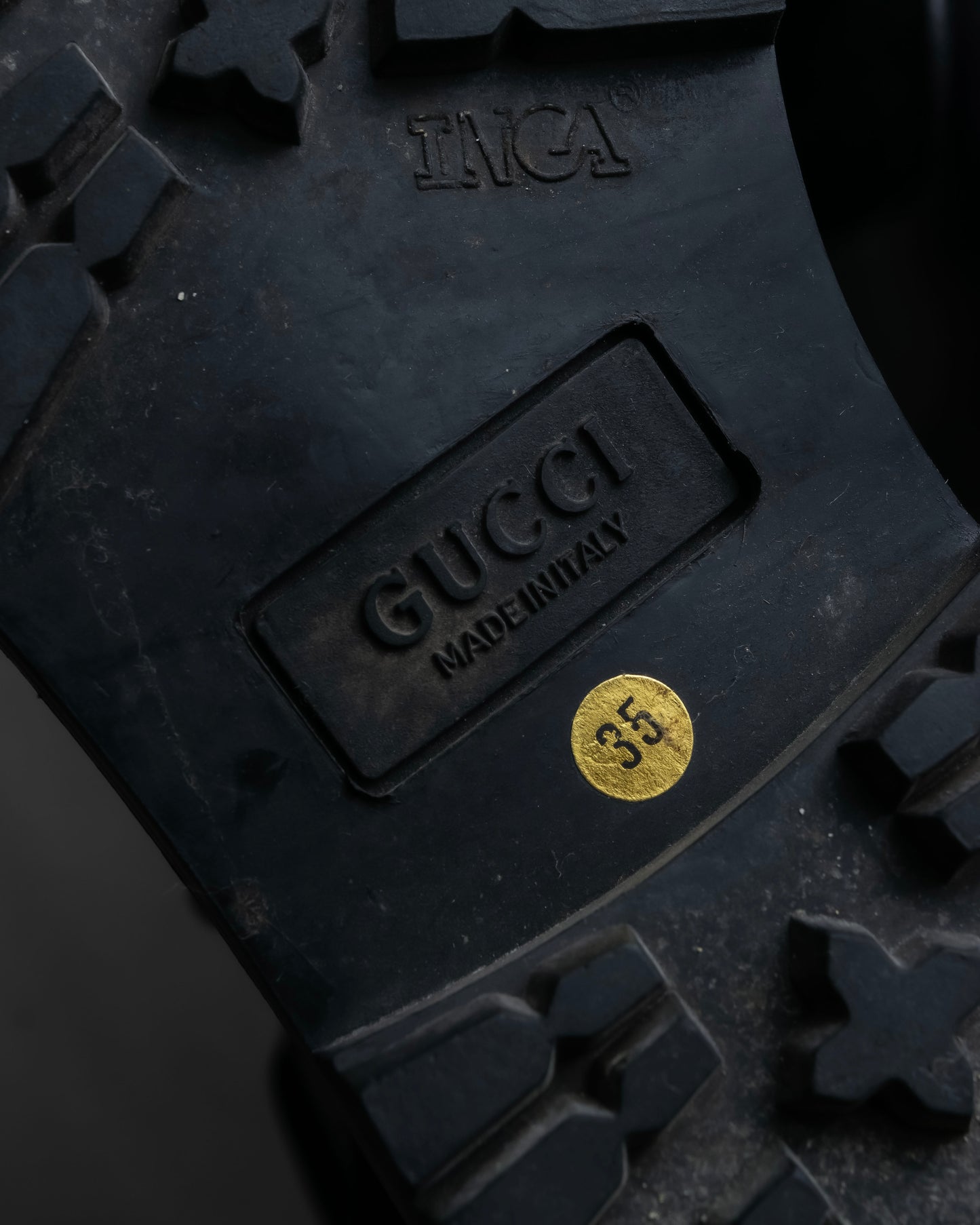 さらに、ブーツ全体に施された細やかなステッチは、GUCCIの卓越した技術を象徴しており、高品質な素材が持つ耐久性や快適性は、時間が経つにつれて足に馴染み、履き心地が増していく着用感をお楽しみ頂けます。また、しっかりとしたソール設計は、長時間の使用でも疲れを軽減し、日常の中での実用性を一層高めています。