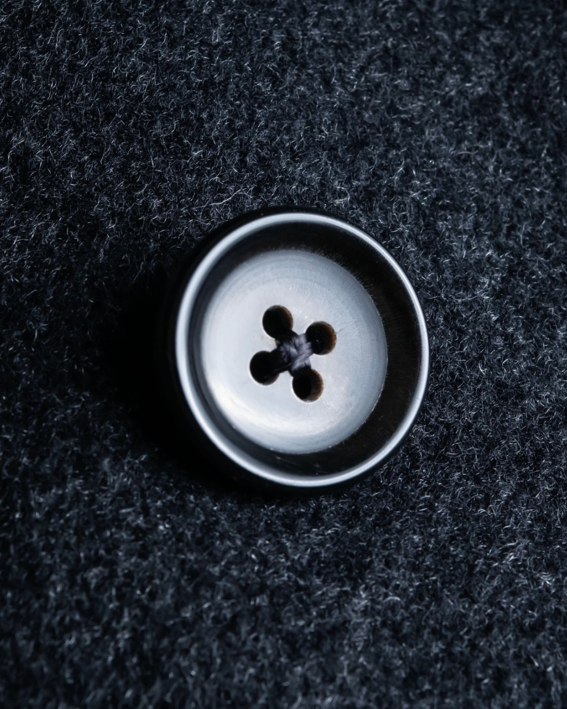 ディテール部分であるボタンを比翼にする事で、シームレスで現代のニュアンスに合うモードとして解釈したデザインが魅力となっております。
