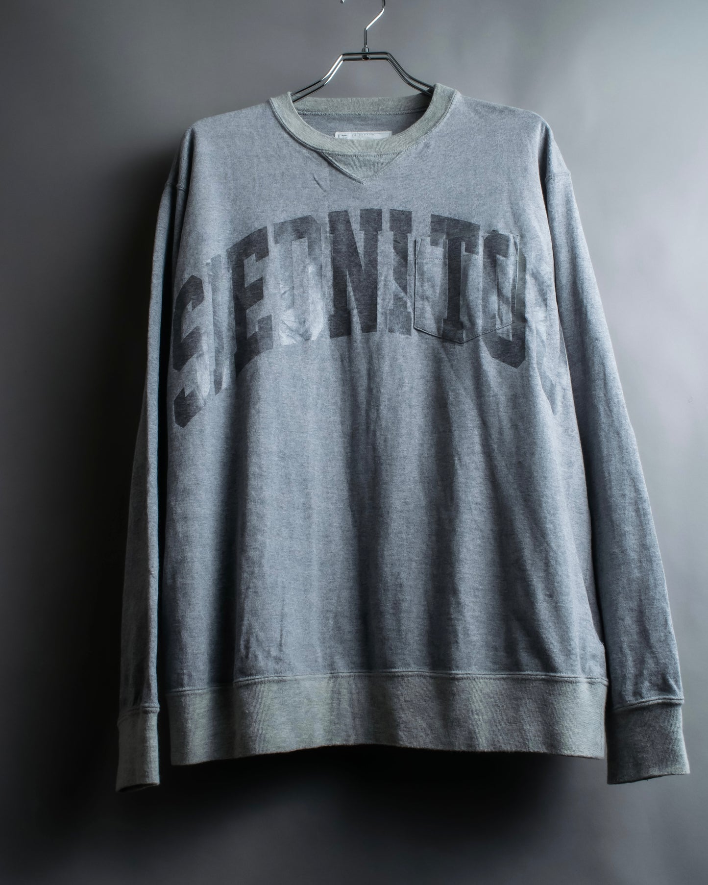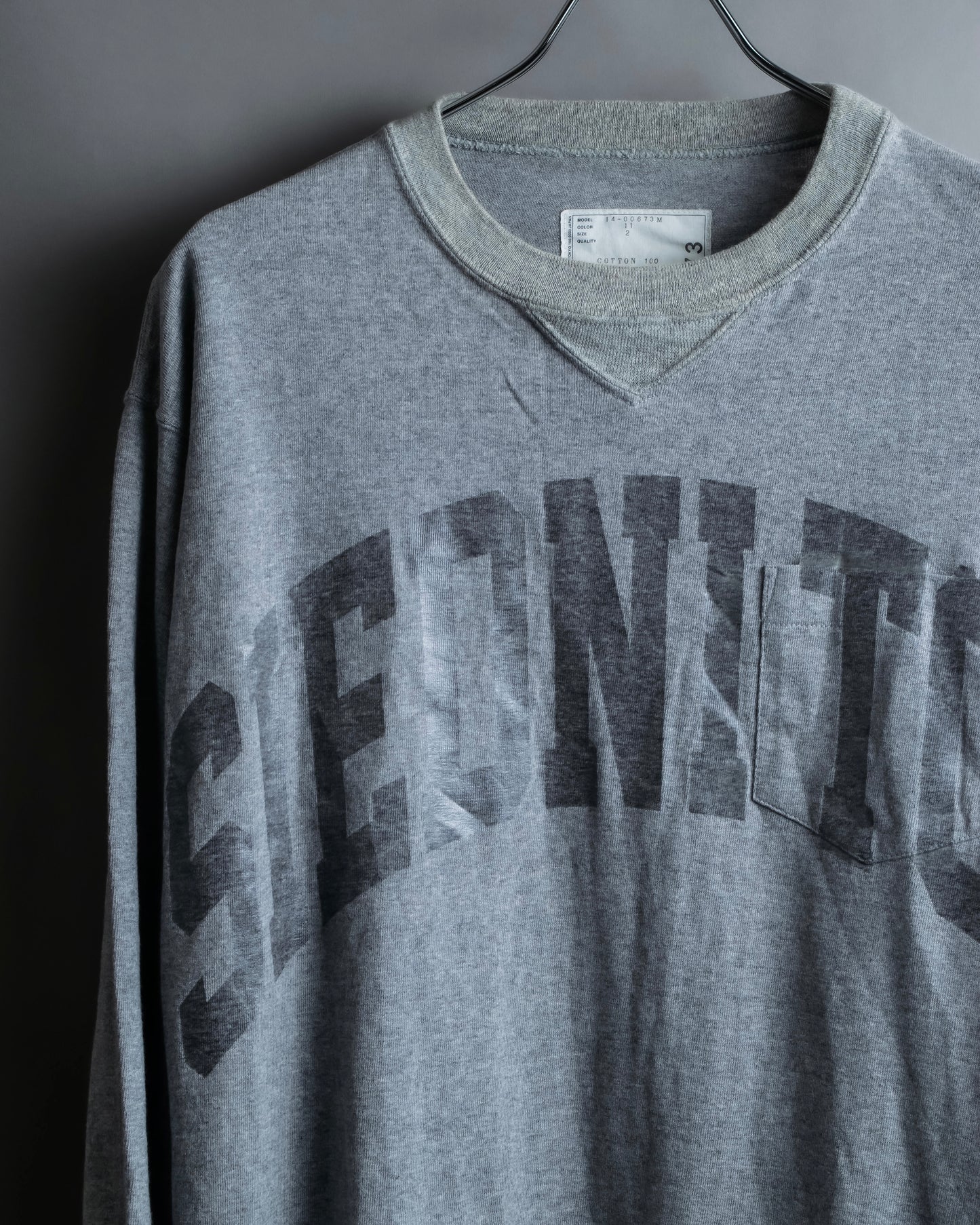 また胸ポケットはフェイクポケット仕様となっており、サカイらしいアバンギャルドなデザイン性を帯びている一方で、ベースは普遍的なスウェットという使いやすさが混在しているのが魅力的です。