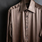素材には、シルクを思わせるなめらかなサテンを使用しており、肌に吸い付くような柔らかさと、光の角度によって表情を変える上質な質感が、唯一無二の存在感を演出します。その為、一枚でさらりと着こなしても十分なインパクトを持ち、ジャケットのインナーとしても、リッチなアクセントを加えてくれるアイテムとなっていますね。