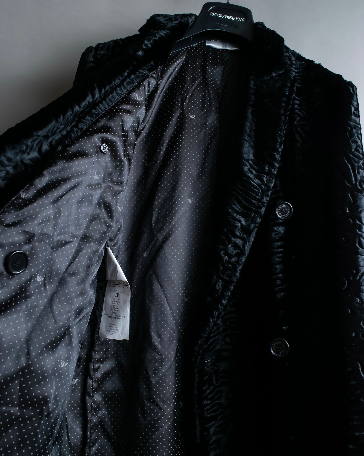 "EMPORIO ARMANI"  Dimensional wave pattern velour like chester coat