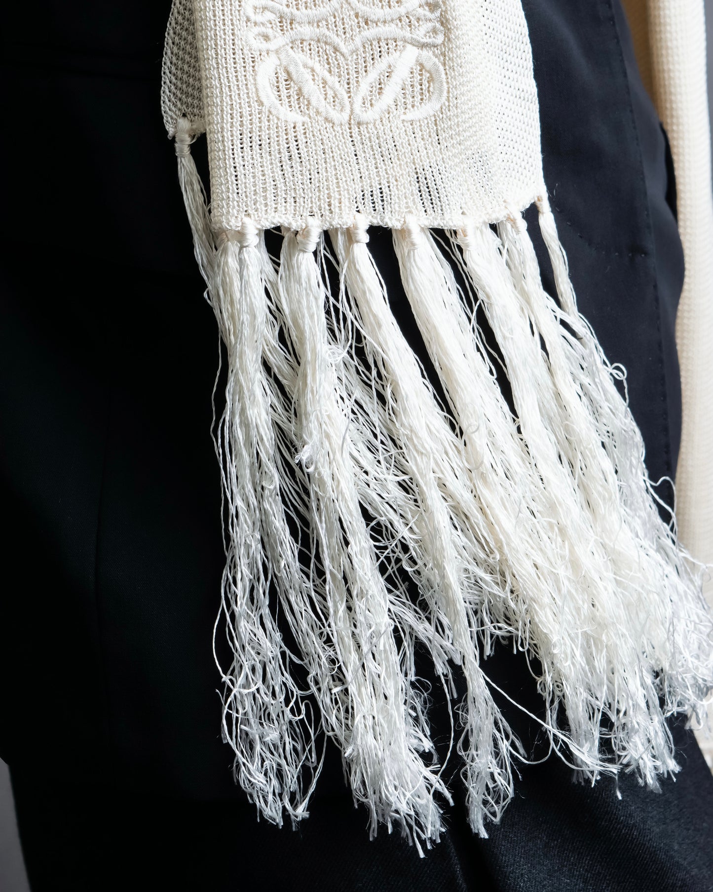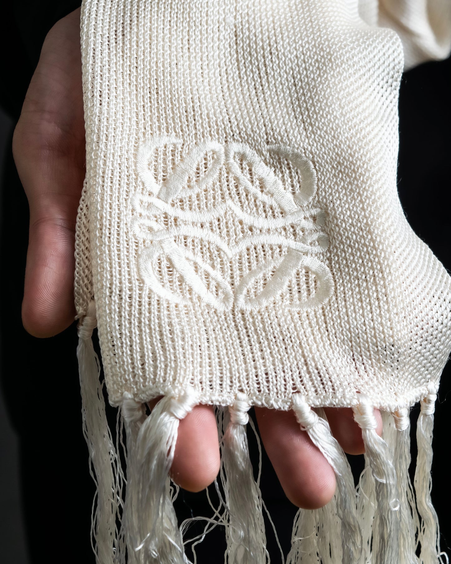 ストールにロエベのアナグラムをあしらった大変アイコニックな印象を覗かせるこちらの逸品。