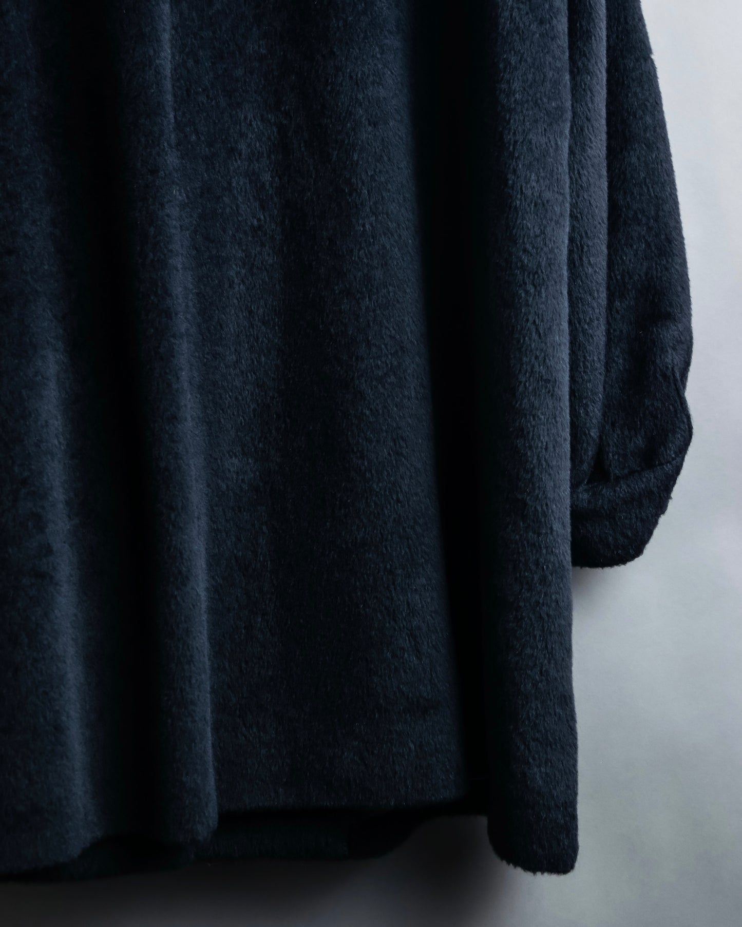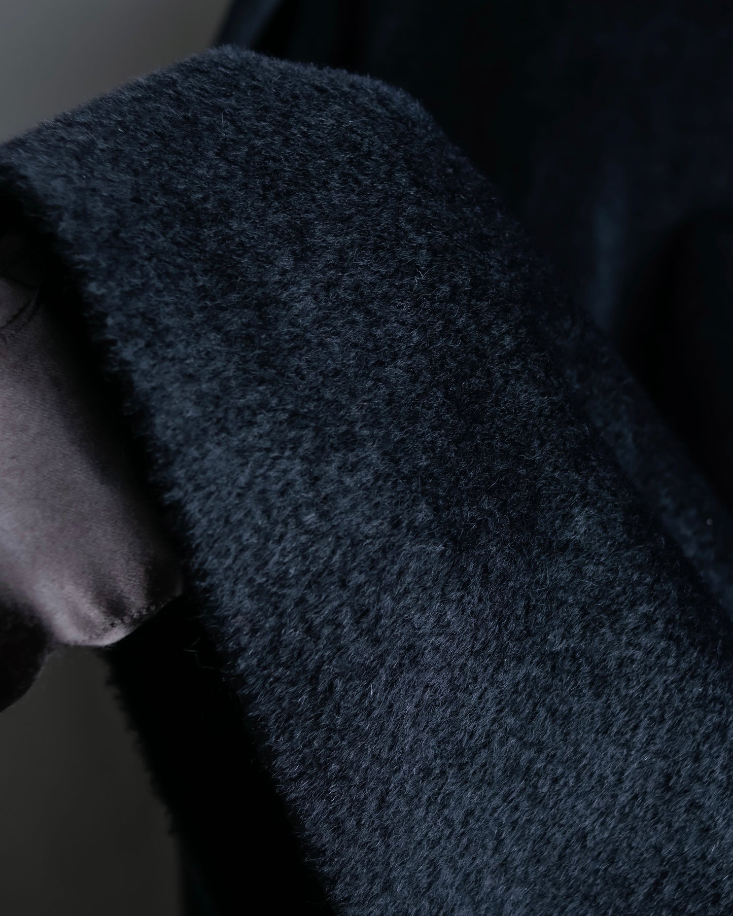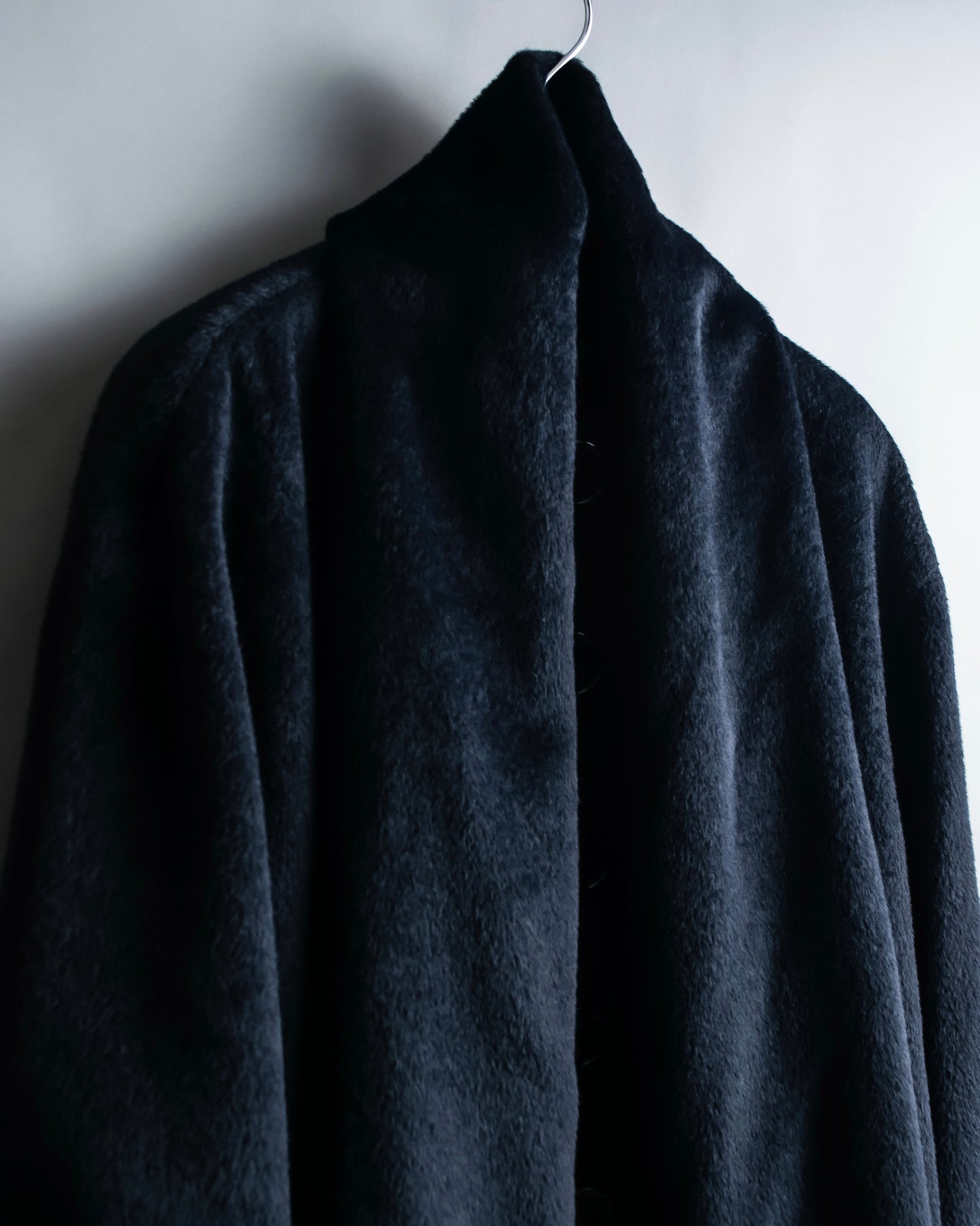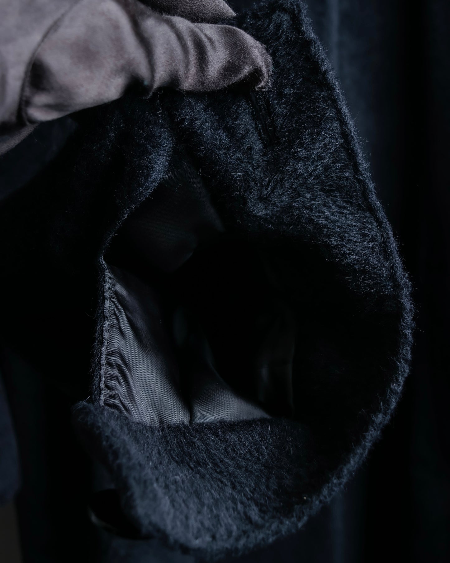 素材は毛足の長いファーの様なウール素材を使用しており、きめ細やかな高級感のある艶が特徴で、真冬にも対応出来る防寒性と保湿性がある魅力に富んだ素材感となっております。