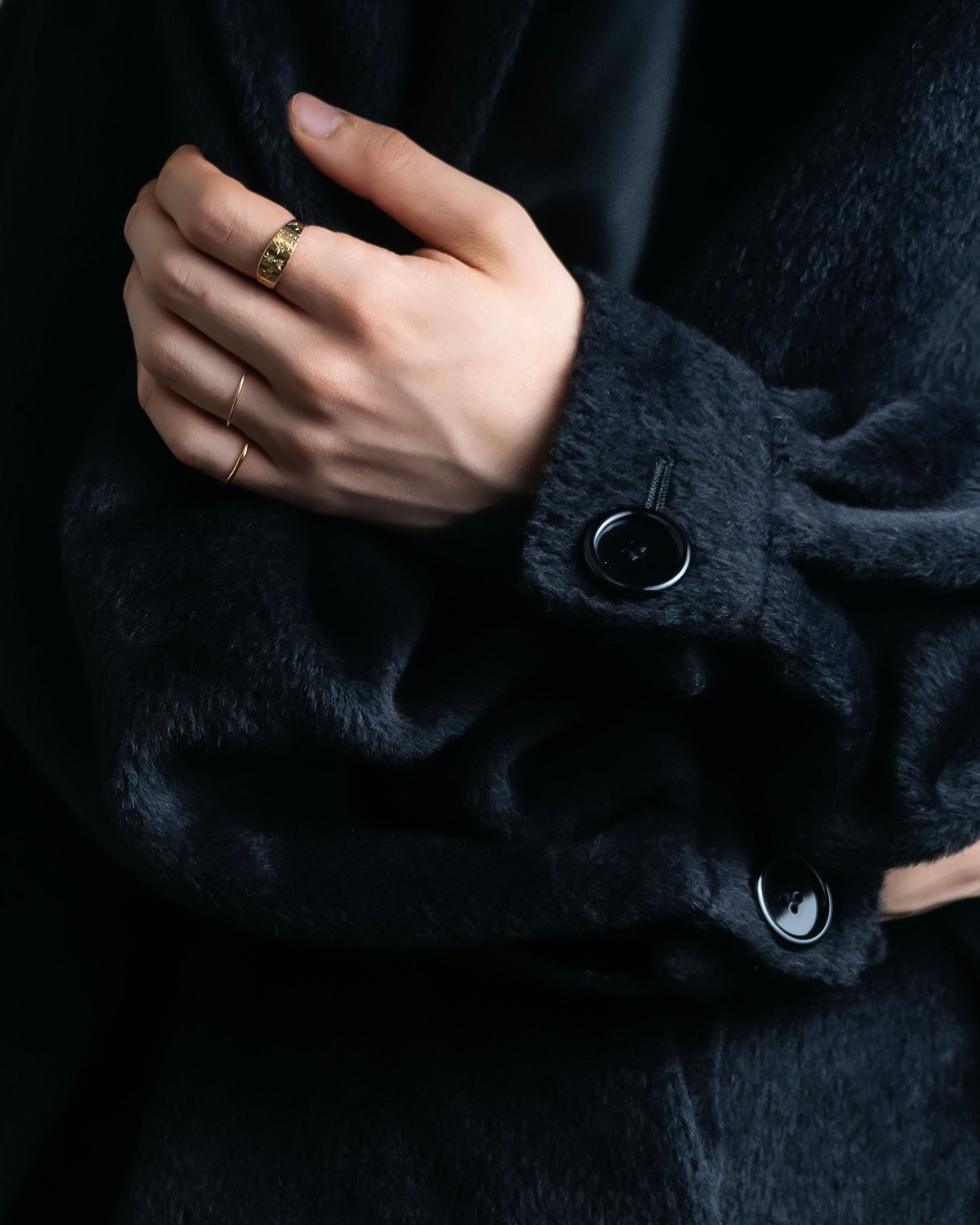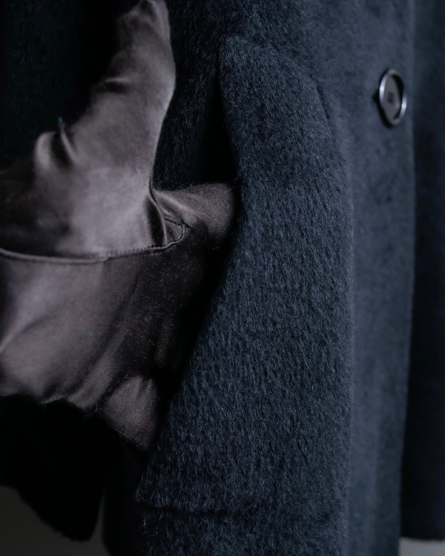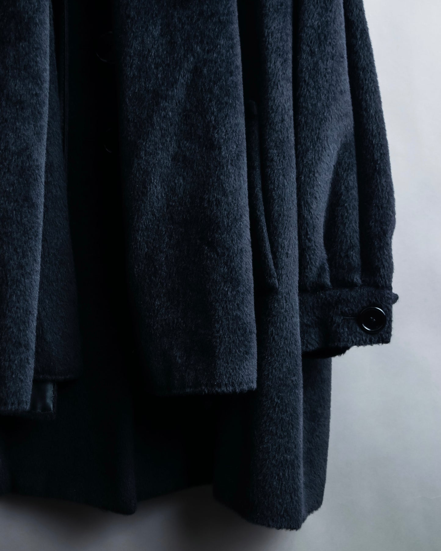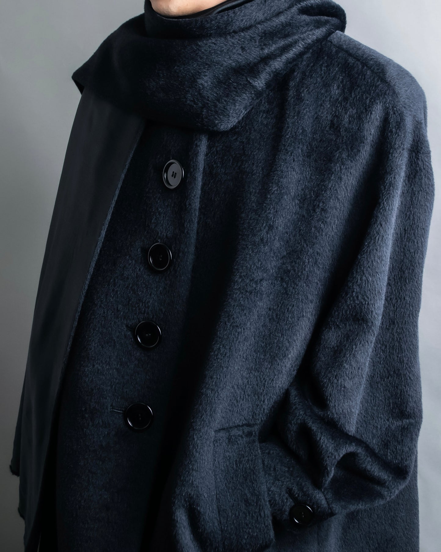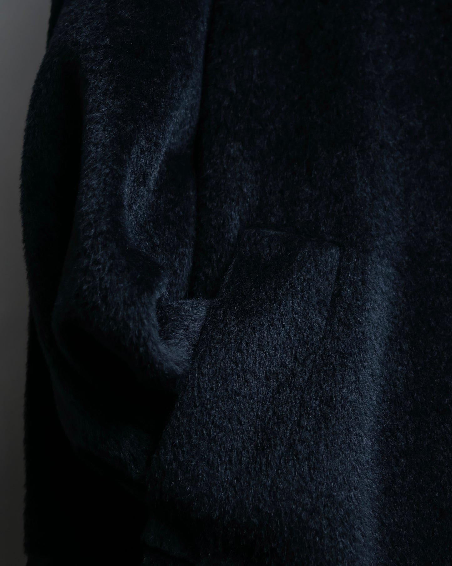 素材は毛足の長いファーの様なウール素材を使用しており、きめ細やかな高級感のある艶が特徴で、真冬にも対応出来る防寒性と保湿性がある魅力に富んだ素材感となっております。