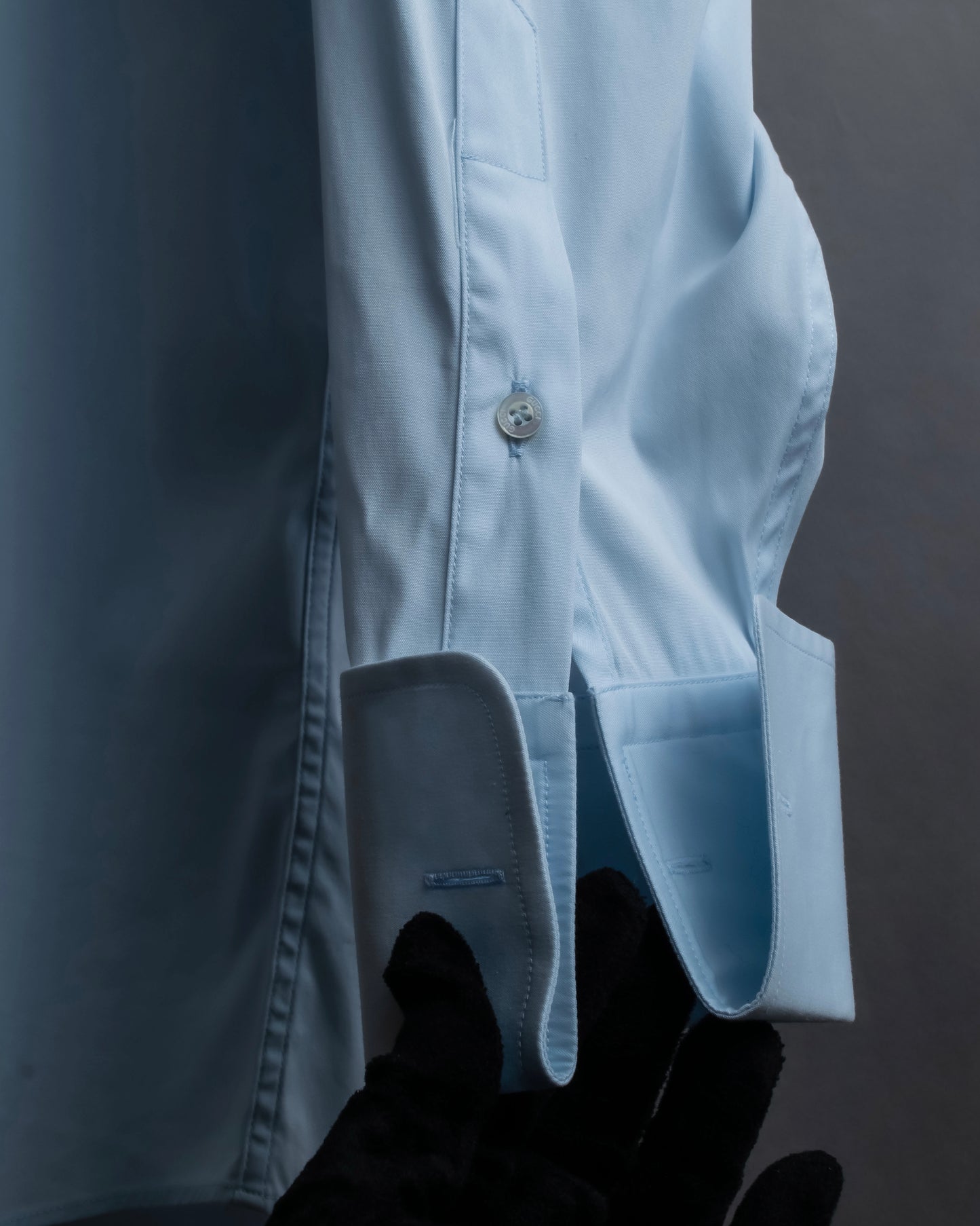 スタイリングとしては、ウールトラウザーや、フルレングスのスカートと合わせていただくことで、シャツの持つ清潔感と静けさがより引き立ちます。足元には艶を抑えたレザーシューズやミニマルなショートブーツを選ぶと、凛とした印象が整い、シーズンを問わずご愛用いただけますね。