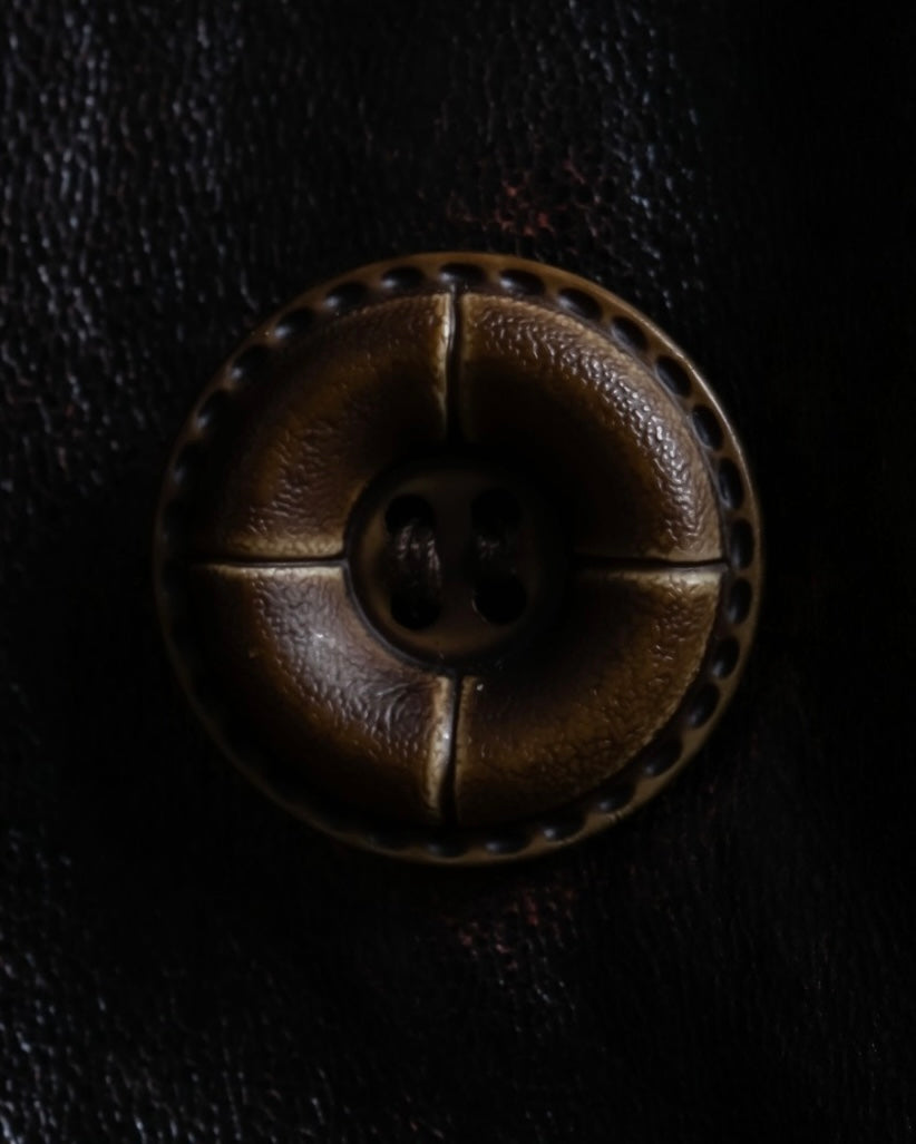 その理由は2つあり、オーバーサイズシルエットである事と、非常に重量感のある肉厚レザーを用いている事が挙げられ、ブランドアイテムに顔負けしないインパクトを「外し」としてモードな雰囲気に仕上げて頂ける希少な逸品となっております。